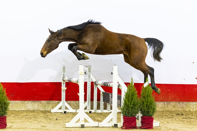 https://youhorse.auction/en/auction/Toffifee-M-OBAILEY-VH-BROUWERHOF-x-AMOR-DE-KALVARIE-5490 Toffifee M is a modern, blood-type filly with a sharp jumping style. She is light-footed, quick off the ground and shows a nice finish over the jump. Her movement is loose, elastic and naturally athletic. She is drawn to the jump and already shows reflexes and willingness at a young age. An interesting yearling for anyone looking for a modern sporthorse with future potential. Her sire O’Bailey vh Brouwershof N.O.P. (Darco) competed at the highest level, and his offspring are known for their scope, mentality and lightness. Her dam Cilka de Kalvarie produced the approved stallion Joop, and the granddam has already produced multiple horses jumping 1.40m and above. This makes Toffifee M part of a proven performance family with reliable sport genes. With her type, pedigree and natural athletic ability, Toffifee M shows all the ingredients for a promising future in sport. This horse was previously auctioned, but as the buyer did not meet his obligations, the payment was never completed. The horse itself is exactly as described. Perhaps it’s no coincidence the previous buyer didn’t pay — this horse was simply meant for you! INFORMATION Date of birth 09-06-2023 Gender Mare Color Bay Studbook AES Height 161 VAT 21.00%