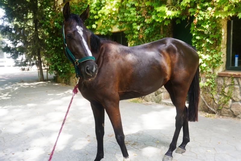 SAHARA H yegua de 3 años, con excelentes movimientos al paso, trote y galope. Muy ligera en el salto en libertad. Hija de HIS PLEASURE DUBOURGET (FOR PLEASURE) y por parte de madre ZENTGRAVIN Z (ZENTO)