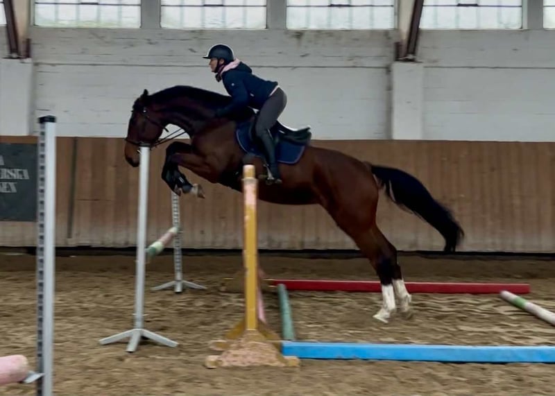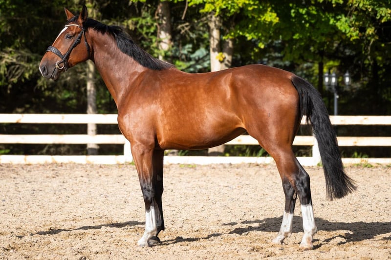 Mare, 4 years old, 16.1 hh, with excellent pedigree: Q’Chacco Blue van Essene / Chacco Blue x Casco / Narcos II A stunning, eye-catching mare that has everything a young sport horse at the highest level should possess. She is strong, dynamic, and precise over fences. She craves human interaction, is eager to cooperate, rideable, and easy to handle, yet she also has a spark (thanks to her grandsire Chacco). Under the saddle, she is delicate to aids, comfortable, and a pleasure to ride. She moves beautifully and looks even better. Healthy, with recent TUV examinations. Location: Kołobrzeg Northwestern Poland Phone: +48 530 720 725