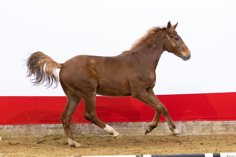 An impressive model with clear jumping quality Hazelberg’s Unas is an impressive chestnut with blond mane, a beautiful model and a strong build. He shows a lot of power off the ground and appears very careful over the fence. When jumping, he clearly displays quality, combining strength with control. A horse that stands out for his scope and jumping technique. Sire Nixon du Park (Nixon van ’t Meulenhof x Quick Star) competed at 1.40m level and is licensed with KWPN. He combines modern sport genetics with proven performance. Grandsire Nixon van ’t Meulenhof competed internationally at 1.60m level and is a well-established name in sport and breeding. Damline The dam is Pico Bella H (Hocus Pocus III Z), descending from a performance-oriented sport family. Hocus Pocus III Z competed at 1.55m level and is licensed with BWP. The second dam Wieneke (Cantos) produced several sport horses, including Hazelberg’s Las Vegas (Juweel), who competed at 1.35m level. Cantos himself competed internationally at 1.60m level and is known as a reliable sire of scope and attitude. Further down the damline: – Lien (Winckenburgh), competed at 1.30m level – A family with multiple horses competing at 1.30m level and higher This damline shows a consistent combination of sport performance and reliable breeding.