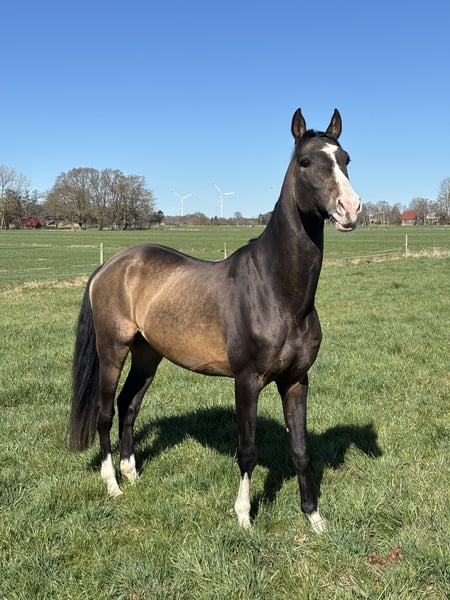 Mr. Bond is a stunning Achal-Tekkiner gelding of a special kind. With his excellent basic gaits, his harmonious, typy appearance, and his unique coloration, he draws all eyes to him. He impresses not only visually but also athletically: Mr. Bond possesses significant jumping potential and consistently demonstrates willingness to perform and attentiveness. His balanced, pleasant temperament makes him a reliable partner in daily training. The gelding is well-built, correctly conformed, and impresses with his athleticism and natural presence. Directly from the breeder. Of course, current X-rays are available with no findings. A special horse for riders seeking something extraordinary.