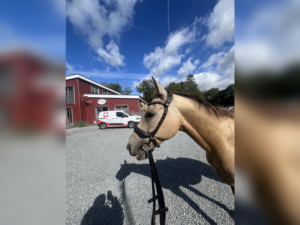 Junger Achal-Tekkiner sucht 5 Sterne Zuhause. Djantemir ist ein 6-jähriger Achal-Tekkiner mit einem Stockmaß von 1,56 m. Er wurde 2019 in Russland gezogen. Er ist ein Pferd zum Selbstausbilden – ideal für erfahrene Reiter. Ich selbst habe ihn vor etwa fünf Monaten gekauft, habe mich beim Kauf jedoch etwas überschätzt. Djantemir ist im Umgang noch recht unsicher. Er lässt alles mit sich machen, braucht dabei aber eine ruhige, erfahrene und sichere Hand an seiner Seite. Geritten wurde er bisher nur im Schritt, da er sich noch am Anfang seiner Ausbildung befindet. Satteln und Trensen klappt problemlos. Stillstehen und Geduld sind für ihn noch eine Herausforderung. Er macht alles brav mit, zeigt jedoch nach etwa zehn Minuten Stehen etwas Unruhe, da er einfach noch ungeduldig ist. Hufe gibt er, ist dabei aber noch etwas unausbalanciert, was ihn manchmal verunsichert. Mit weiterer Übung wird auch das bald kein Problem mehr sein. Er kennt Hunde, Kinder, Autos, Traktoren und Lärm und zeigt sich dabei stets von seiner besten Seite. Auch Platz und Halle sind ihm bekannt, wo er sich ebenfalls artig zeigt. Bei mir war er bislang nie krank oder lahm. Die Zähne wurden im September 2025 frisch gemacht, Tetanus- und Influenza-Impfungen wurden im selben Monat aufgefrischt. Außerdem wird er regelmäßig dem Hufschmied vorgestellt. Aktuell wird er 24/7 in Weidehaltung gehalten, nur zum Arbeiten und Füttern kommt er in den Stall. Boxenhaltung kennt er zwar, wünschenswert wäre jedoch Offenstallhaltung, da er in der Box unruhig werden kann. Ursprünglich wurde er für Distanzritte gezogen. Da er relativ unerschrocken ist, wird er mit Sicherheit ein toller Ausrittpartner. Mit dem richtigen Reiter hat er aber auch das Potenzial für deutlich mehr. Es handelt sich hierbei nicht um einen Notverkauf – ich gebe ihn nur in beste und erfahrene Hände ab. Eine Besichtigung ist nach Terminvereinbarung selbstverständlich möglich. Nachrichten gerne per WhatsApp an +49 173 2716155