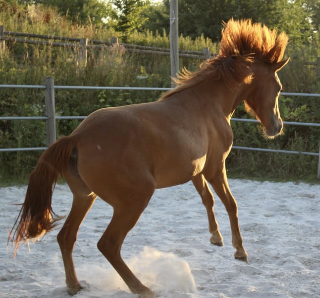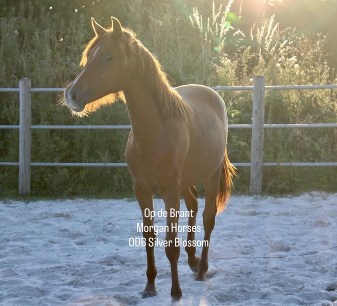 Elegant American Morgan Mare for Sale Discover the beauty and versatility of this stunning American Morgan mare, born in 2024. With her rich chestnut-red coat and graceful stature, she will stand at 1.54 meters, embodying both strength and elegance. Perfectly suited for Western riding disciplines, this mare offers a wonderful opportunity for riders seeking a reliable and spirited partner. Whether you're an experienced rider or an enthusiastic beginner, her friendly temperament and impressive presence make her an excellent choice. Don't miss the chance to welcome this exceptional mare into your stable! Blossom is very friendly and just like the morgan race stands out for, she loves humans. Her mom is the most cool mare in our breeding program. This young mare has both, character and stunning looks.