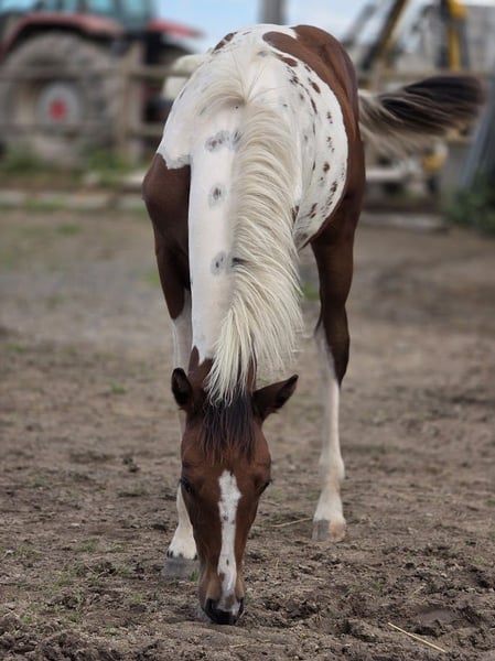 Très joli mâle OC PAINT, né le 22.04.2025. Toise adulte : entre 1m55 - 1m60 Un petit bonhomme majestueux et avec beaucoup de prestance. Le bijoux par excellence. Il se montre calme, froid et curieux. Il apprend très vite. Très bien dans sa tete et ses sabots. Il vit actuellement en troupeau composé d'hongre, femelles et autres poulains. Les boxes sont ouverts en continus, mais PERLINO connait également le boxe fermé. Il dispose de foin à volonté et de sa ration de floconné matin et soir. licolé. Pansage Ok. Aucun soucis de santé. A jour de vermifuge. En cours de primo vaccination. OK enfants, chien, poule, tracteur. Au vu de son jeune âge le reste de son éducation est encore à enrichir. Plus d’information en MP