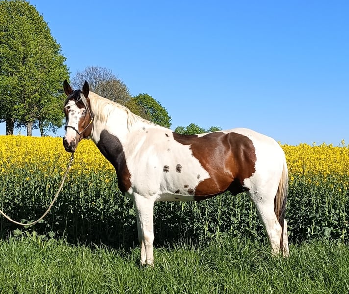 For Sale: Stunning American Paint Horse Stallion – Tovero All-Colors Discover the beauty and versatility of this exceptional American Paint Horse stallion, born in 2020. Standing at 162 cm, he boasts a striking Tovero coat pattern that showcases a captivating blend of all colors, making him a true standout in any herd. This young stallion is not only visually impressive but also comes from a reputable breeding background, ensuring excellent genetics and potential for various disciplines. His balanced conformation and vibrant presence make him an ideal choice for enthusiasts seeking a versatile and eye-catching equine partner. Whether you're interested in show, breeding, or performance, this American Paint Horse offers a remarkable combination of beauty, lineage, and potential. Don’t miss the opportunity to add this remarkable stallion to your collection. He Is 4 years breeding stallion, 2 years under saddle. ( last year ( 2025) ONLY breeding not ridding, but Is very easy to ride him) For more information and to arrange a viewing, please contact us 😊