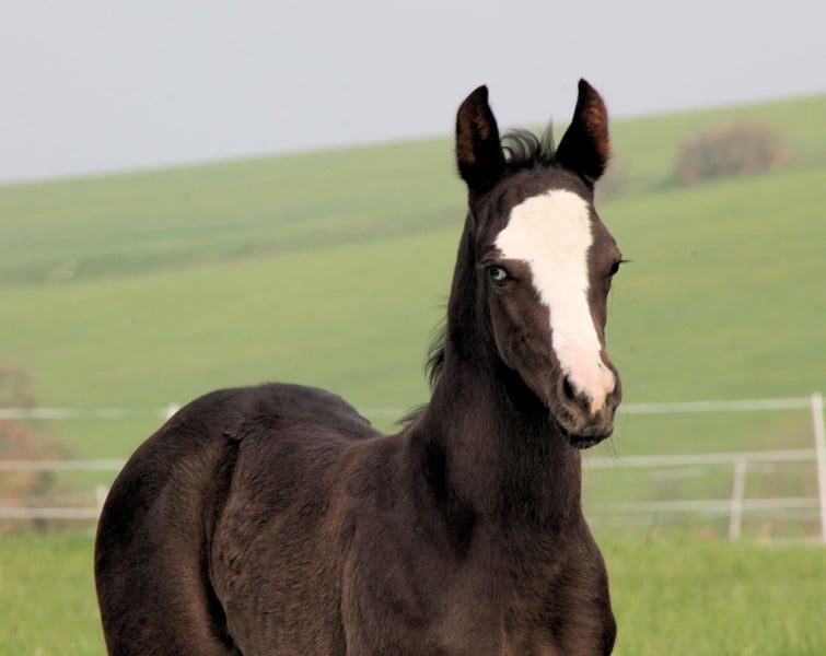 - Kings Smart Reminic - Paint Horse Hengstfohlen 04/2026 black with blue eye in besonderer Optik by Kings Black Vision x SR Reminics O Lena Smarty hat nicht nur ein besonderes Aussehen, auch sein Pedigree kann sich sehen lassen. Charakterlich ein absoluter Schatz, unerschrocken und sehr menschenbezogen. Kann ab Ende September als Absetzer ins neue Zuhause umziehen. Kennt bei Abgabe das Fohlen ABC und hat alles im Gepäck was er brauch. Wird mit APHA Papieren und E-Pass inkl. Zuchtbescheinigung abgegeben. Selbstverständlich wird er bis dato regelmäßig dem Hufschmied vorgestellt, gechipt, mehrfach entwurmt und geimpft. Smarty wächst mit gleichaltrigen Pferden auf großen Weideflächen im Herdenverband auf. Wenn sie Smarty kennenlernen möchten, können Sie sich gerne bei uns melden.