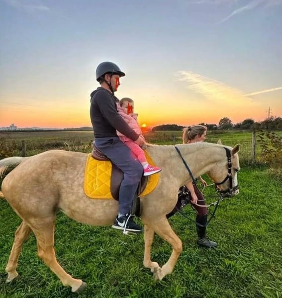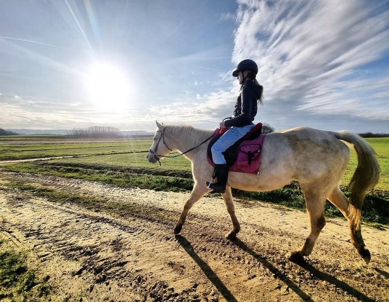 Se ofrece a la venta una yegua Paint (sin registrar) de 2015, que mide aproximadamente 150 cm de altura, con una llamativa cara blanca y un ojo azul. Su naturaleza tranquila y gentil la convierte en una excelente compañera para niños, principiantes y jinetes de todos los niveles de experiencia. Ha sido montada tanto en senderos como en la pista por jinetes novatos y experimentados, incluidos niños, y ha demostrado ser segura, confiable y fácil de manejar. • Montada sin bocado (side pull) • Acostumbrada a la silla inglesa y western • Segura en el tráfico, confiada en senderos • Carga fácilmente en un remolque • Se queda bien para el herrador • Nunca ha sido herrada, tiene cascos fuertes y sanos También es una madre cariñosa y atenta, que produce consistentemente potros bien construidos y de buen carácter. Actualmente se ofrece a la venta con su potro sorrel overo de 2025, engendrado por el semental de Quarter Horse de pedigree RV Hot Tamale. Pueden venderse juntos o por separado después del destete, que se espera a finales de septiembre de 2025. • Tanto la yegua como el potro están sanos y no tienen problemas ocultos • Ubicación: Eslovenia • Fotos y videos disponibles a pedido Para más información, por favor contáctame por WhatsApp. Precio con potro - 7.000€ Precio sin potro - 5.500€ Se vende: Yegua Paint confiable y gentil con potro – ideal para principiantes y familias.