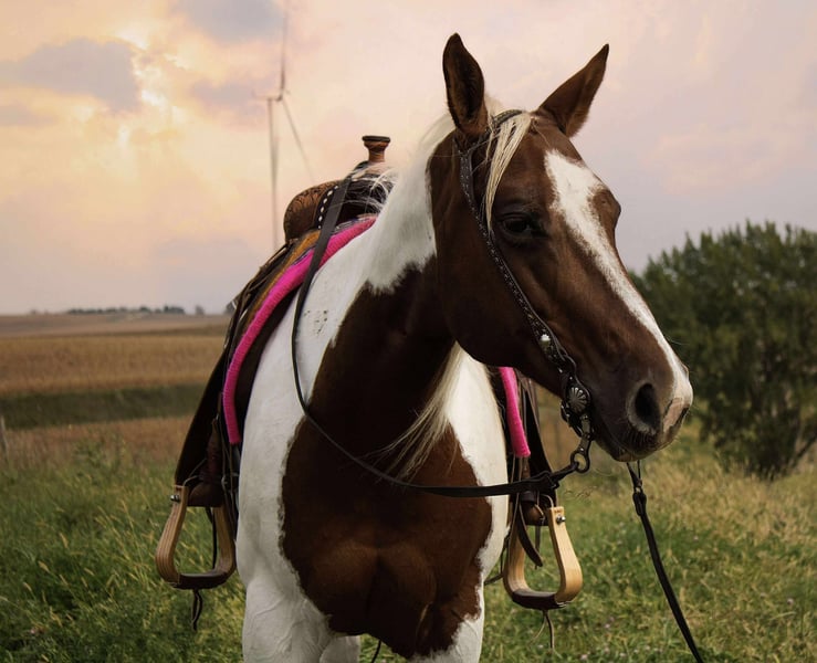 "AVAILABLE ON ONLINE HORSE AUCTION AT www DOT MagicHorseAuction DOT com BIDDING OPEN NOW thru TUESDAY | October 14TH! - BUY IT NOW AVAILABLE! *Final price will be determined on auction site* CONSIGNOR CONTACT INFO: McKenzie Cramer 330-307-0323 LOCATION: Battle Creek, IA Reign is 10 year old 14.3 hand paint mare. This mare is drop-dead gorgeous, guaranteed to turn heads wherever you go. Her stunning looks are matched only by her quiet demeanor! Reign is by beyond gentle and safe for anyone! She is very light in the face, W/T/L and backing up with ease. Reign has been there done that and has primarily been trail ridden or used to check and doctor the cattle here. She’s our go to mount in any situation, demonstrating reliability and competence in various tasks. On the trails, Reign is a dream. She navigates through water, over hills, and logs with ease. Shes been exposed to all sorts of obstacles, including teeter-totters, bridges, and a bunch of other extreme obstacles - making her a confident and trustworthy trail partner. She isn’t just impressive under saddle… she’s also fantastic on the ground. She loves being loved on and will follow you around like a loyal puppy dog. She’s always the first to greet you at the gate, waiting to show you affection. She stands well for the farrier, grooming, bathing, and saddling. Loading her into a trailer is a breeze, making travel stress-free for both of you. Reign is the full package – a horse that combines beauty, brains, and a wonderful disposition. Don’t miss the chance to own such a remarkable horse who will bring joy and reliability to your life. This horse is ready to become your next beloved companion and partner!