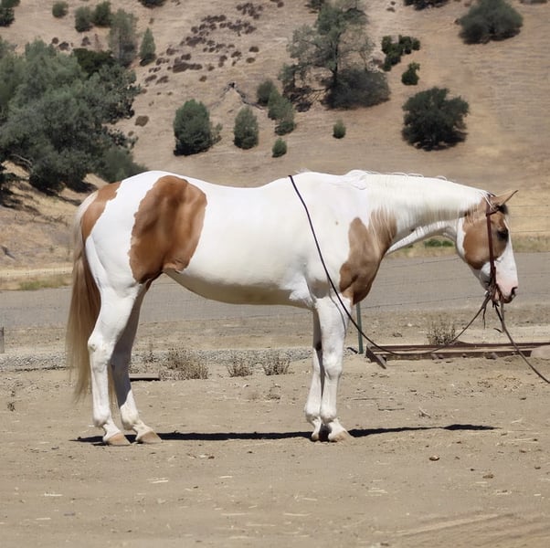ONLINE AUCTION Place your bids at www.PlatinumEquineAuction.com Starting Bid $3500 Auction ends August 3rd, 2025 Need a new saddle? Check out White Rock Saddles on our website or Facebook Meet Bunny… If you’ve been searching for that rock-solid, “take-care-of-you” kind of horse… meet Bunny. She’s an 11-year-old palomino and white paint mare who stands 15 hands, but her heart and patience are ten feet tall. Bunny has safely carried everyone from nervous first-timers to adults who haven’t ridden since dial-up internet was a thing. She’s taught countless riders the ropes with confidence and zero drama. This is the kind of mare who makes you feel like you know what you’re doing—even if you don’t. In the arena, Bunny is soft and correct. She lopes smooth circles, stops and backs with ease, and has just enough turn-around to remind you she’s broke, not boring. She’s as dependable as the sunrise, with no buttons to accidentally push and no funny business to worry about. On the trail, she’s a machine. Bunny navigates rocky climbs, creek crossings, logs, brush, and steep hills like she’s part mountain goat. She’s seen it all—flags, traffic, tarps, sirens, pool noodles—and never bats an eye. Bunny will conquer any obstacle you throw her way. She’s also been used on the ranch and knows her way around cattle and branding. We trust her with our greenest riders because she’s basically a babysitter in a bridle—steady, kind, and always thinking ahead. And her ground manners? Impeccable. She leads, ties, bathes, hauls, stands for the vet and farrier, and settles into new places like she’s been there forever. She’s polite, friendly, not marish in the slightest, and frankly acts better than most geldings—and a good number of humans. If you’re looking for a safe, kind, all-around wonderful mare to be your trail buddy, confidence builder, family horse, or ranch partner, Bunny is ready to help take care of you. Located in Paicines, CA. Call Dina at Longhorn Ranch: 831-537-1915 Delivery available, but only if you promise to treat her like royalty. ONLINE AUCTION Place your bids at www.PlatinumEquineAuction.com Starting Bid $3500 Auction ends August 3rd, 2025 Need a new saddle? Check out White Rock Saddles on our website or Facebook