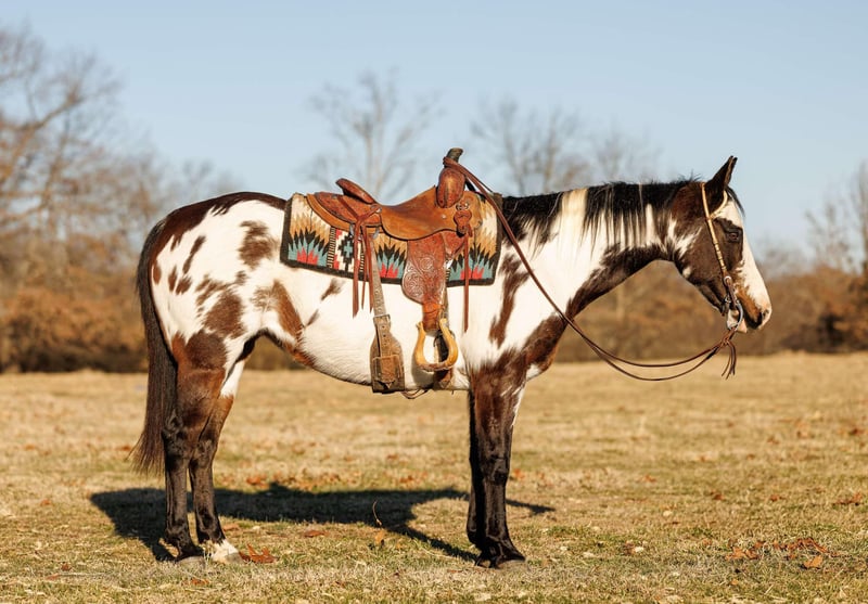 ONLINE AUCTION Place your bids at www.PlatinumEquineAuction.com Starting Bid $3500 Auction ends March 30th, 2025 Need a new saddle? Check out White Rock Saddles on our website or Facebook! Mercedes is an eye catching 13 year old mare with more color than a crayon box! At 14.3 hands she can easily pack anyone, big or small. Along with her drop dead gorgeous color, her good-natured personality radiates wherever she goes and grabs everyone’s attention. Mercedes goes down the trail with a level head and crosses water, logs, ditches and other obstacles with an unfazed attitude. She is easy to catch, groom, saddle, bridle, load and bathe. She also rides bareback and bridle-less! Mercedes is my go-to mount to use at the cow sale penning back, loading trucks and working gates. She has an impressive one-hand neck rein, moves off of leg pressure well and will stay collected when asked. Mercedes doesn’t have the typical mare-ish attitude, she gets along with others in the heard and has a calm, civil disposition. She is made right with clean, straight legs and is sure footed. Mercedes has been rode through town, at the lake, and even made an appearance at the nursing home to visit the residents. Whether you are taking a stroll through town, easing down the trail or putting in a full days work Mercedes is sure to fit the bill and capture your heart! Watch her full Youtube video, feel free to reach out with any questions, and arrange a visit or a FaceTime with Mercedes Contact Lacey Wilf 501-940-8704 Located in Quitman, AR. ONLINE AUCTION Place your bids at www.PlatinumEquineAuction.com Starting Bid $3500 Auction ends March 30th, 2025 Need a new saddle? Check out White Rock Saddles on our website or Facebook!