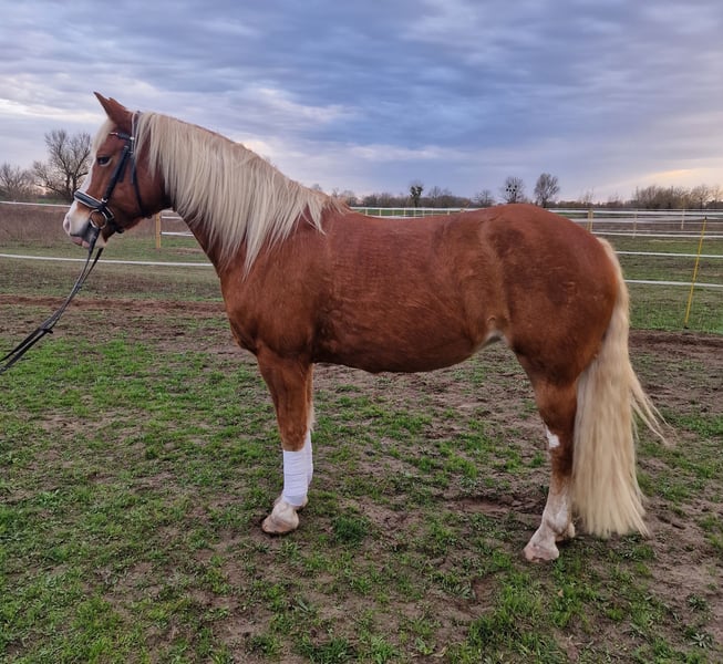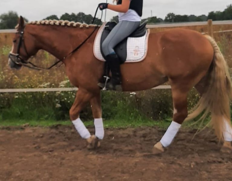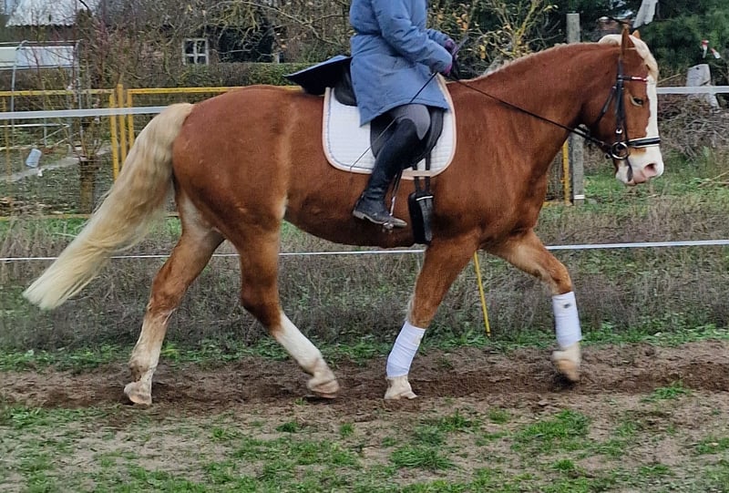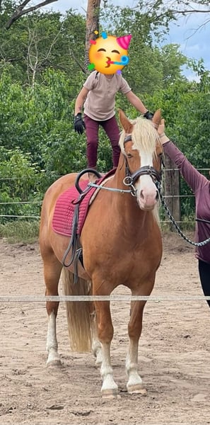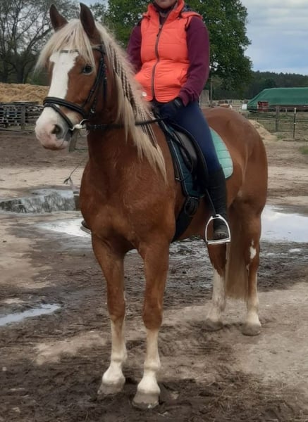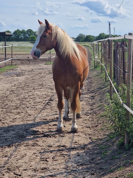 We are selling our lovely mare "Say Yes". Leisure horse, top trail horse. She loves being out in the field. When working in the riding arena, dressage/jumping, she needs a bit more persuasion. We have often thought that perhaps a role in Western riding would suit her better. In handling, she is incredibly sweet; she enjoys being groomed and pampered for hours and has a lot of fun with groundwork. Her occasionally diva-like behavior makes her very endearing. She is conditionally suitable for beginners, as she does not show any bad habits. However, it is conditional because we are generally reluctant to place a horse as a "personal" horse in the hands of beginners who do not yet have sufficient expertise. We can also imagine Jessy well in a therapeutic setting. She would also likely be a good fit as a vaulting horse on a small scale. Due to a lack of opportunities (the inability to ride out from this location), she is somewhat neglected with us, and we cannot meet her needs adequately. Therefore, we would prefer someone who has a particular affinity for trail riding and can better meet her needs. Jessy is kept in a mixed herd in an open stable and shows a rather dominant but not aggressive behavior. Health-wise, we have never had any problems, except for a surgically healed splint bone fracture five years ago. There is one downside: loading is very difficult. Unfortunately, we lacked the time to work on this consistently. However, she does load onto a larger transporter. We have time to find Jessy a good home; this is not an urgent sale.