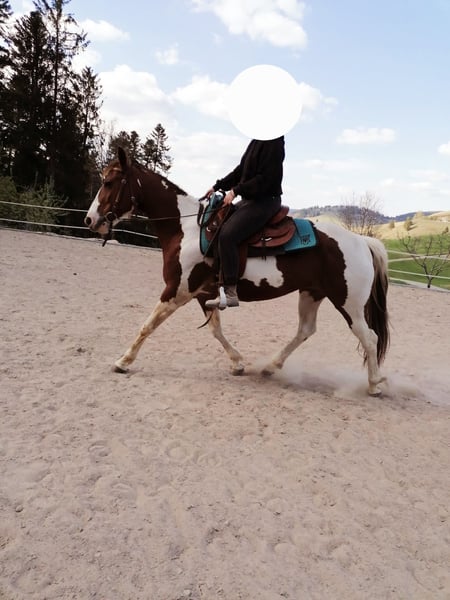 Holly – Paint Horse Holly arrived at my place in January 2022. Shortly before, I had lost my soulmate horse, who had suffered a severe leg fracture upon waking from anesthesia and had to be euthanized immediately. As many may know, I wanted to find a new horse right away to have a new task and purpose. In hindsight, this decision was somewhat hasty, as I never fully managed to bond with Holly. When Holly came to me, I learned by chance from a trainer about her difficult past. This initially gave me a new challenge, and I had to rebuild her trust, which I was able to do with time and patience. Last year, I became pregnant and now have a baby, which means I no longer have the opportunity for consistent and regular training with Holly. In my opinion, this is actually best for her. She needs to be challenged and benefits from regular work, especially when it comes to riding. Due to my personal situation, Holly has not been ridden extensively for the past 1.5 years. She enjoys groundwork and free lunging very much and engages actively. We live in the South Black Forest and do not have a paddock directly on the farm or an indoor riding arena, which makes the conditions more challenging. Since Holly has not been ridden recently, a trial ride is not possible. She has a breeding certificate but has not had any foals so far. Overall, I would initially prefer to rehome her as a companion horse or as a "project horse," since she has not been ridden for a longer period. A good placement is more important to me than the price.
