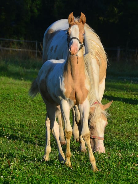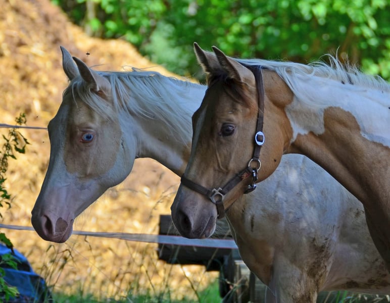 Brezel è omozigote per Tobiano e Champagne! I suoi puledri saranno sempre colorati e color champagne. Lei stessa è un pinto Gold Champagne. Ovviamente anche 7 pannelli N/N. Ha il passaporto e i documenti dell'APHA e del PHCG. Brezel ha un occhio blu. È una piccola rubacuori che chiede di essere grattata.