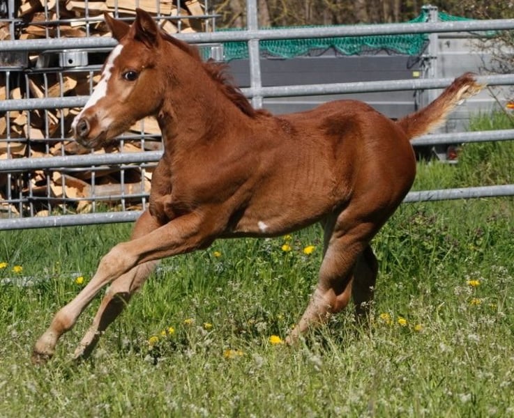 Paint Horse Stute *03/2023 Chestnut/Sorrel Für Katie suchen wir ein schönes Zuhause nach dem Absetzen im Herbst. Sire: Smartes little Cat (High Brow Cat, Doc Olena, Doc Bar, Smart little Lena, Poco Bueno) Dam: GM Jeanys Gotta Gun (Gotta West Coast Gun, Katie Gun, Hollywood Dunnit, Topsail Whiz) Katie ist die Enkelin von High Brow Cat. Er ist der führende Cutting-Horse-Vererber aller Zeiten, dessen Nachkommen bis heute mehr als 86 Millionen US-Dollar verdient haben, darunter acht NCHA Open Futurity-Titel. Katie wächst im Herdenverband auf, wird regelm. entwurmt und dem Schmied vorgestellt. Sie hat eine Lebensversicherung die mit übernommen werden kann. Sie bekommt APHA Papier und E-Pass (PHCG). Katie ist aufgeweckt, zeigt gute Bewegungen und hat einen schönen Körperbau. Außerdem hat Sie ein halbblaues Auge. Sie wird ein geschätztes Endstockmaß von 148-152cm bekommen. Am Besten Live anschauen kommen. Katie freut sich mit ihrer Mutter und Ihrer Oma, die ebenfalls bei uns steht. Besichtigung ist nach Terminabsprache möglich. Melden Sie sich. Auch für weitere Bilder und Info`s. (Bilder Ihrer Eltern und Großeltern am Ende der Galerie)
