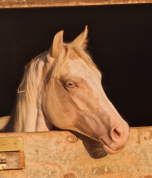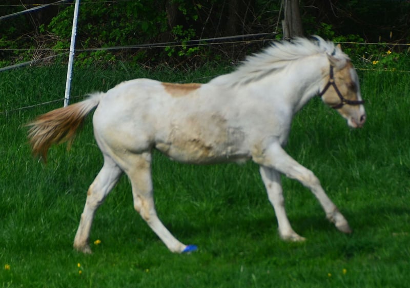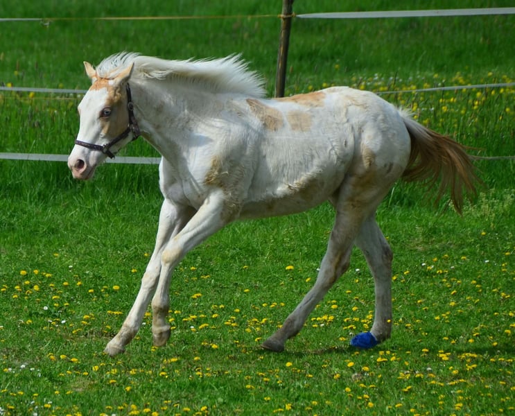 Lyria ist ein wunderschönes Paint Horse Stütchen in Gold Dun Champagne Tovero, mit zwei stahlblauen Augen. Geboren 03.06.2023 Sie ist schmusig, lieb, und bestens erzogen. Hat gern mal den Huf auf dem Gaspedal, und düst über die Koppel. Zeigt dabei ihr wahnsinns Talent für Tempo Kontrolle, Galoppwechsel und Stops! Sie ist über die Eltern 7 Panel N/N. Lyria gewann die Zuchsthow des PHCG der Stutfohlen mit einer 8,0 Gesammtnote.