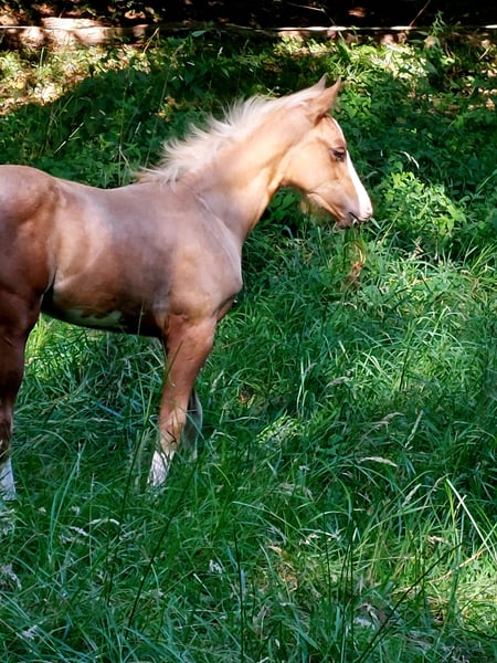 Verkaufe American Paint Horse Stute – Geburtsjahr 2024 Zum Verkauf steht eine wunderschöne American Paint Horse Stute, geboren im Jahr 2024. Sie besticht durch ihr elegantes Palomino-Fell und ihre beeindruckende Erscheinung. Sie ist freundlich, sensibel und lernwilig. Die Stute wurde liebevoll aufgezogen und ist bereit, in die nächsten Abenteuer gestartet zu werden. In ihrem Stammbaum befinden sich bekannte Namen wie Doc O'lena, Cats Coco Dancer, Shine Chic Shine und Hollywood Jac 86 , was sie auch für die Zucht interessant macht. Bei Interesse stehe ich gerne für weitere Informationen und eine Besichtigung zur Verfügung.