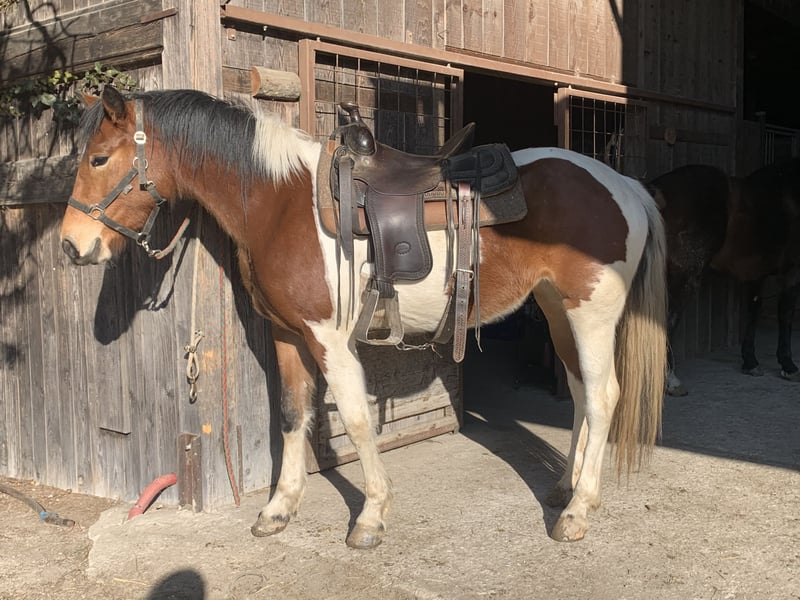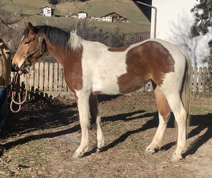 For Sale: Paint mix Mare – bay tobiano Started under saddle in the beginning of november. Calm and willing nature makes her perfect for trail riding. no problems with traffic. isn’t scared of much. she knows neck raining and is currently ridden lightly in all three gaits, mostly on the trails (max 45 minutes in one day). she goes both alone and with a group on the trails. loads easily in the trailer. is shod on all 4 feet because of bad weather and ice. currently living on a big pasture in the herd 24/7.