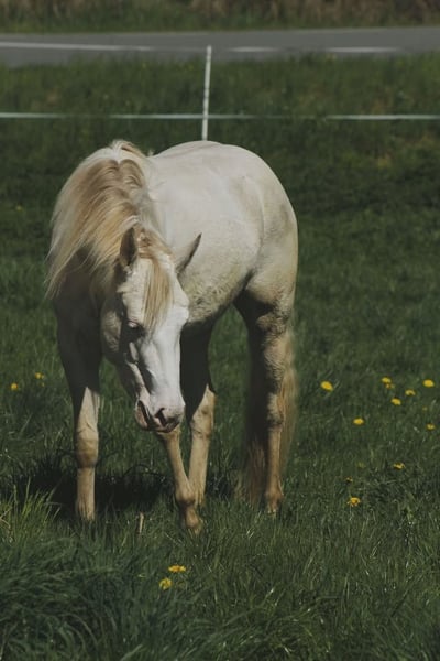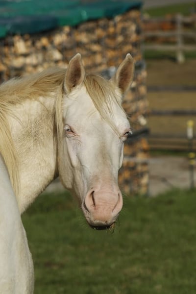 GM Sugar O Lena Star is a stunning Paint Horse mare, born in 2022, featuring the exceptional Perlino Frame Overo coloration with a Bald Face and striking blue eyes. She is genetically tested (A/A, E/e, D/nd2, CR/CR, LWO/n) and is expected to reach approximately 15 hands. This young lady impresses with her beautiful color, correct conformation, solid foundation, and overall healthy physique. She has been tested for 6-panel genetic markers, including MHYM n/n, and is farrier- and loading-friendly, regularly wormed and vaccinated, and currently unshod. Since foalhood, she has been living in a herd environment, allowing her to grow up calmly and socialized to her surroundings. She is accustomed to 24/7 pasture turnout as well as stall with paddock. In handling, she is very people-oriented, well-behaved, curious, and balanced. She remains calm and not spooky, handles well, but occasionally needs a gentle, friendly reassurance when it comes to work. She learns quickly, enjoys discovering new things, and overall presents as an uncomplicated, pleasant young mare with great potential. She is halter-trained, familiar with basic foal handling, and experienced in various terrains, including busy roads, cars, tractors, and trucks. Thanks to her versatile pedigree, she is particularly appealing to riders active in both sport and leisure riding. GM Sugar O Lena Star is a well-rounded, attractive horse with excellent conformation, eye-catching appearance, and a wonderful character – a true eye-catcher with heart.