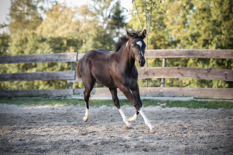 With a heavy heart, I must part with my 5-year-old Paint Horse mare Malou due to time and financial constraints. - 5 years old and approximately 16.1 hh - Black/bay with a white blaze on her neck and mane, plus four white legs - Award-winning Paint Horse foal - Direct offspring of the Paint Horse stallion Magic on Ice - Trained in Western style (both bitless and with a bit) - Has experience in the field from the ground; ridden in the terrain in all gaits, though she still requires more confidence due to her age - Conformation issue (she rolls her front hooves from outside to inside and needs shoes; a specialized hoof orthopaedic shoeing is not necessary) - Started with liberty work - Has been further trained according to the ProRodeo Horsemanship concept - Comes from a Swiss Paint Horse breeding farm I am looking for someone who wants to work with Malou in a recreational capacity. Currently, she is in a small herd in an open stable. Accessories can be included for an additional fee. If you would like more information, photos/videos, or a personal phone call, please feel free to contact me :)