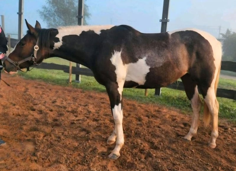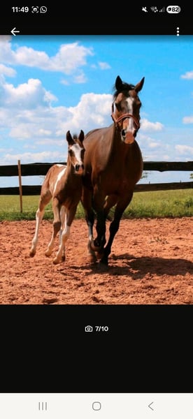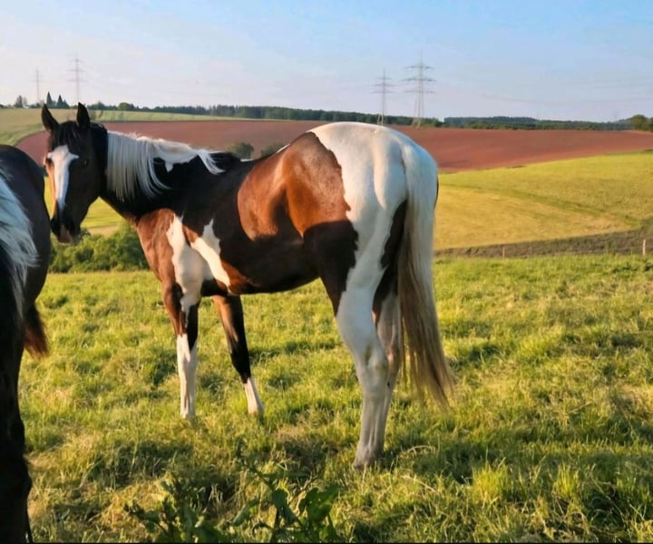 Vor dem Sommer zum Sonderpreis: Ein absoluter Eyecatcher. Geboren 09.05.2021, von Apaches Lightning Bar (durch seine Adern fließt feinstes Cowhorse-und Foundation-Blut), aus der Why me. Beide Elterntiere absolut rittig und charakterlich einwandfrei. Toffee überzeugt optisch mit ihrem kräftigen dennoch korrekten Körperbau. Charakterlich zeichnet sie sich durch ihre unerschrockene forsche Art aus. Sie kennt Kinder, Hunde, Autos, Traktoren und große Maschinen. Sie ist bestens sozialisiert und wurde bisher robust gehalten, steht mit ihrer gleichaltrigen Spielkameradin in einer größeren Herde zusammen. Selbstverständlich regelmäßig entwurmt, geimpft und dem Hufschmied vorgestellt. Steht brav beim Beine-Abspritzen sowie angebunden beim Putzen und Hufe geben. Halfterführig auch alleine von der Herde weg. Die Nachkommen unseres Hengstes zeichnen sich durch eine sehr menschenbezogene Art aus. Papiere ausgestellt von der American Painthorse Association und Equidenpass vom Painthorse-Club Germany.