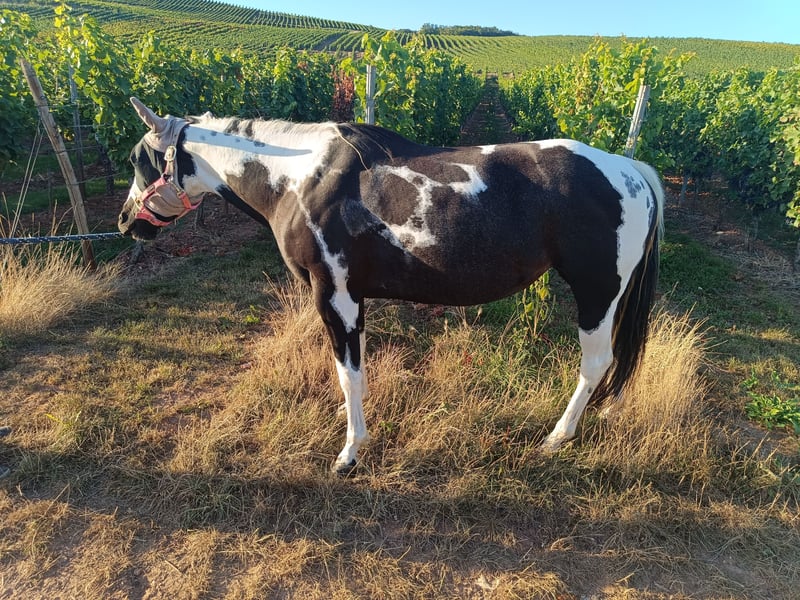 Con mucho pesar, tengo que desprenderme de mi maravillosa yegua Paint. Nació en 2019 y actualmente está en entrenamiento profesional con una entrenadora de Western. En este momento, trabaja regularmente en el suelo y ya conoce la silla de montar. Lamentablemente, he tenido que aceptar que no es el caballo adecuado para mí a largo plazo, ya que soy demasiado grande para ella y no espero que vuelva a crecer. Esta decisión la tomo únicamente en su mejor interés, porque merece un hogar donde la quieran y donde un jinete que se adapte mejor a ella pueda cuidarla. Busco para ella un lugar donde pueda ser cuidada y querida, preferiblemente con alguien con experiencia en la doma de caballos jóvenes o en Western. Si hay interés serio, estaré encantada de contar más sobre ella y su desarrollo. - Viaja muy tranquilamente en remolque - Ya ha tenido 2 crías y es una madre excepcional - Homozygota tobiano - Altura a la cruz 1,40 m - Documentos de la APHA, pasaporte de équido - Pruebas genéticas - Revisión osteopática - Vacunada