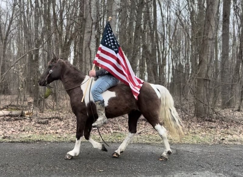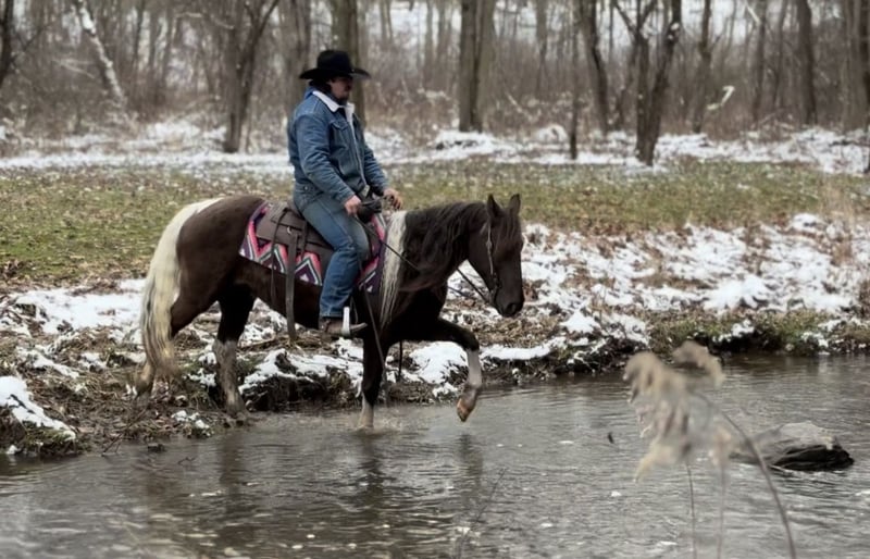 "AVAILABLE ON ONLINE HORSE AUCTION AT www DOT MagicHorseAuction DOT com BIDDING OPEN NOW thru TUESDAY | APRIL 28TH! BUY IT NOW AVAILABLE! *Final price will be determined on auction site* CONSIGNOR CONTACT INFO: McKenzie Cramer #330-307-0323 LOCATION: NORTH BLOOMFIELD, OH" Holly Mae is a beautiful paint mare standing 14.2 hands tall and 8 years old. This is an exceptionally nice, seasoned mare that knows her job and does it well. Holly Mae has been used as an everyday trail horse through the hills of eastern Kentucky, West Virginia, and Ohio— She confidently handles steep, rough, rocky terrain, big creeks, and deep hollows like its second nature. This little mare will go anywhere you point her, keeping up with the big horses and often making it look easier than they do. She genuinely enjoys her job and is the kind you can climb on, head out, and just relax. Holly Mae is the type that lets you sit back and enjoy the ride—the way it’s supposed to be. She’s been exposed to all aspects of farm life including machinery, traffic, and other animals, and takes it all in stride. She is an easy keeper, stands well for the vet and farrier, and is as low-maintenance as they come. Whether you’re looking for a dependable trail partner to log miles this summer or just a good-minded mare to enjoy, Holly Mae is ready to go to work for her next rider.