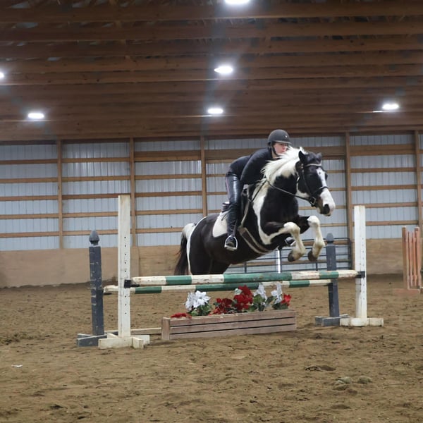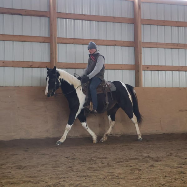 "AVAILABLE ON ONLINE HORSE AUCTION AT www DOT PlatinumEquineAuction DOT com BIDDING OPEN NOW thru SUNDAY | MARCH 22ND! *Final price will be determined on auction site* CONSIGNOR CONTACT INFO: Ellesse Schwartz 248-390-6831 LOCATION: Howell, MI We would like to introduce Sunshins Shastas Daisy or Sunshine as we call her at home. She is a registered 2018 (8 year old) APHA mare who stands a hair shy of 14.2hh. She is a beautifully put together tobiano. Sunshine has a delightful demeanor as she is a kind and loving horse who has been trained with all the bells and whistle's. Sunshine walk, trot, canters and knows her leads. Her transitions are effortless both upward and down. She both neck and direct reins. Sunshine has been used in 4/H and equestrian team and has competed in everything from trail to jumping to flags and poles. She is the type of horse who will teach you. She is easy to catch, load, haul, groom and tack. The most timid kiddos can do everything with her. Sunshine is happy to putz down a trail on a long rein and is not reactive of anything. She's also happy to jump around courses with beautiful flying changes. She is extremely versatile in her training and her ability. Kids as young as 6 and adults as old as 75 can ride and enjoy her and she will adjust to her rider. Sunshine has completed our full desensitization program and passed with flying colors. She even knows how to lay down on command! She's been trail ridden in the mountains of KY and the deep woods of Michigan. If you're looking for a true all around horse with stunning color, a good pedigree and loads of real world experience Sunshine is your girl! She lives in Howell MI 48855! Enjoy the video as we showcase several riders with a multitude of abilities. Call Ellesse 248-390-6831 for more information
