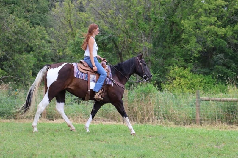 ONLINE AUCTION Place your bids at www.PlatinumEquineAuction.com Starting Bid $3500 Auction ends October 6th, 2024 Need a new saddle? Check out White Rock Saddles on our website or Facebook! Oreo is the go to horse for any timid, first time rider who just wants to sit back and relax. She is a beautiful black and white paint mare. She is 7 years old and stands 15hh. Oreo is a reliable horse who carries herself with style and grace. She is very well broke at all of the gaits and effortlessly picks up both canter leads and she also comes with excellent breaks. Oreo has a lovely one handed neck rein and strives to please her rider. She has been extensively trail ridden, road ridden and has been camping. Loud traffic, deep water, bridges, deer and bicyclists are no issue for her. Oreo is a seasoned trail horse who will ride out alone, lead a group or happily follow behind. If there’s one thing this girl knows, it’s how to take good care of her rider. Oreo has also been to local shows and has carried the flag in a few parades! She has been a camp favorite to all of or beginner riders and now she’s looking for a person to call her own. If you’re looking for a safe, quiet horse to enjoy out on the trails, Oreo will make an excellent addition to your family. To come meet this delightful girl please give us a call or text. Located in Howell Michigan Contact Ellesse Schwartz 248-390-6831. ONLINE AUCTION Place your bids at www.PlatinumEquineAuction.com Starting Bid $3500 Auction ends October 6th, 2024 Need a new saddle? Check out White Rock Saddles on our website or Facebook!