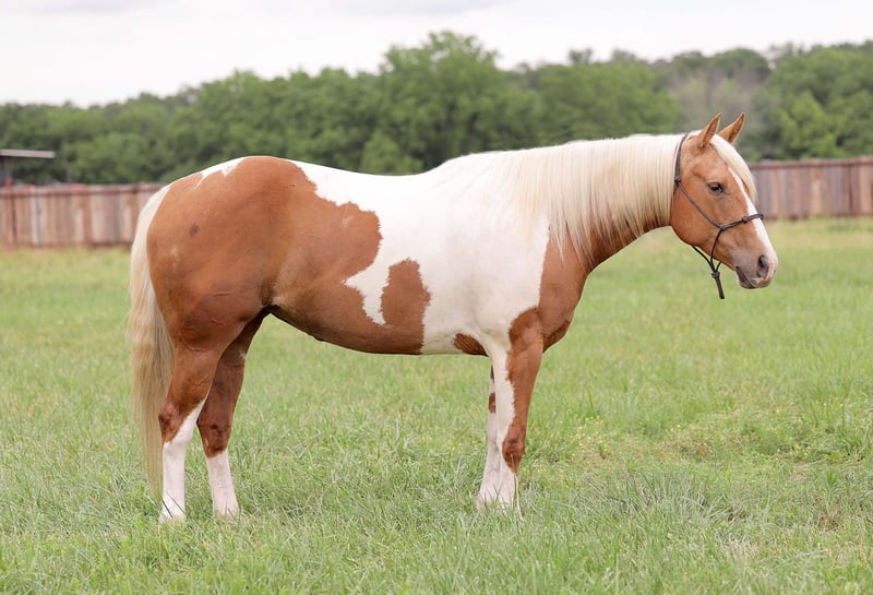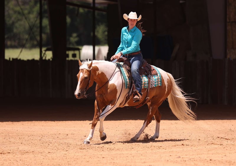Shinin Cat ("Shada") - cavalla registrata APHA del 2018, di 14,2 hl. Avete mai visto una cavalla così carina? Dal suo colore unico e la sua splendida criniera lunga, alla sua personalità dolce, tollerante e curiosa, Shada è l'unicorno che la maggior parte delle persone sogna di avere nella propria vita. Questa bellissima cavalla a prova di bomba è fiduciosa e sicura. È stata cavalcata dappertutto, sia da adulti che da bambini. Sebbene abbia una grande maneggevolezza, si fermi in un attimo, giri, passi laterali a qualsiasi ostacolo e sia in grado di lavorare su un cancello o di gestire una corda, è anche in grado di ridurre il ritmo in un momento per soddisfare anche i cavalieri più inesperti. Shada è stata utilizzata come cavallo da lezione per bambini ed è incredibilmente gentile con i cavalieri di tutti i livelli. Con i suoi 14,2 anni, è la taglia perfetta per bambini e adulti. Shada è una ragazza robusta e sicura di sé, pronta a percorrere i sentieri o ad andare nell'arena. Si può cavalcare comodamente con altri cavalli o da sola. È pronta e disposta a fare qualsiasi cosa con voi. Oltre al suo lungo e prezioso curriculum, questa cavalla vanta anche alcuni grandi nomi sui suoi documenti, tra cui High Brow Cat, Shining Spark e altri. È amichevole, ama i bambini e si prenderà cura di chiunque la cavalchi. Shada ha una delle personalità più dolci e vi catturerà sul campo! È super sicura e non ha alcun tipo di atteggiamento sciocco. Potete salire su di lei a pelo e cavalcare verso il tramonto, oppure metterle la sella dopo un po' di tempo libero. Sarà la stessa cosa per voi ogni giorno. Shada è molto comoda in tutte le andature! Ha tutti i tasti che si possono desiderare, sia che si tratti di portare i bambini a fare una cavalcata, sia che si tratti semplicemente di essere a portata di mano nel ranch. Questa ragazza sicura di sé non si spaventa davanti a nulla. Può portare la bandiera, trascinare tronchi, aprire cancelli, attraversare ponti e teloni, qualsiasi cosa le venga in mente. Al di fuori del lavoro, i suoi hobby preferiti sono nuotare e giocare a calcio con la palla grande. È stata molto allenata in pista. Sale e scende dal rimorchio. Si trascina benissimo! Ha fatto da pony ad altri cavalli ed è stata anche poniata. Con l'esplosione del mercato APHA e delle mostre, non c'è mai stato un momento migliore per possedere un cavallo Paint registrato! Questa cavalla può essere registrata anche come Pinto e Palomino se siete interessati a partecipare a mostre di altri colori. Shada è molto a suo agio nel farsi manipolare i piedi. Sarà il nuovo cliente preferito del vostro maniscalco! Sta in piedi legata e ama i bagni! È felice di vivere all'interno o all'esterno. Nessun vizio. 100% sana. Ha superato i DPI a pieni voti. Questa bellissima ragazza è pronta a incontrare la sua famiglia per sempre! Per maggiori informazioni contattare Zacharias Horsemanship Sid 715-416-1502 Situato ad Adair, OK.