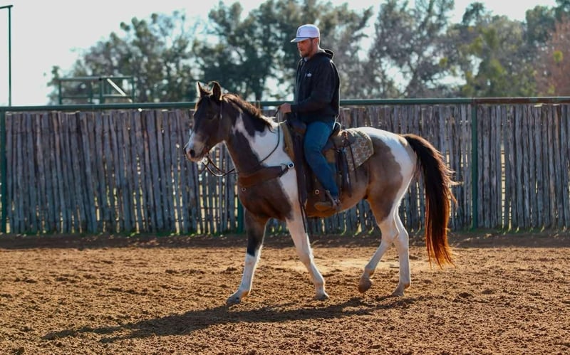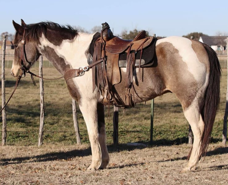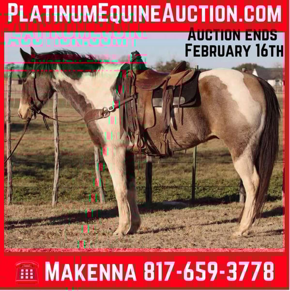 ONLINE AUCTION Place your bids at www.PlatinumEquineAuction.com Starting Bid $3500 Auction ends February 16th, 2025 Need a new saddle? Check out White Rock Saddles on our website or Facebook! If you are looking for a good, solid, affordable gelding to add to your barn check out this one! Raja is a very solid grade paint gelding and stands at 15.1 hands tall and is 9 years old! Raja is built to last and has all the ability in the world. He is a blast to ride and has the smoothest gates ever! This guy will go absolutely anywhere you point him. Raja has been ridden outside on the ranch most of his life making him super fun and safe out on trail. Very easy to control, super fun ride! He has been around wildlife, blowing tarps, heavy equipment, barking dogs, and lots of other crazy! He loves getting attention, to be groomed and he loves his baths. This gelding loads/unloads in the trailer with ease and will stand tied up all day like a gentleman. This gelding is a pleasure to be around making him very desirable. Hes gonna turn heads and he will keep you safe! Located in Lipan Texas We can help arrange shipping anywhere in the US, Hawaii, Canada. Please call or text Makenna Hartzell 817-659-3778 for more information. ONLINE AUCTION Place your bids at www.PlatinumEquineAuction.com Starting Bid $3500 Auction ends February 16th, 2025 Need a new saddle? Check out White Rock Saddles on our website or Facebook!