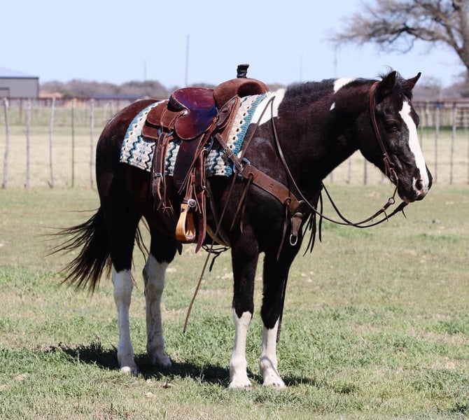 ONLINE AUCTION Place your bids at www.PlatinumEquineAuction.com Starting Bid $3500 Auction ends April 6th, 2025 Need a new saddle? Check out White Rock Saddles on our website or Facebook! Peter is a super sweet gelding, standing at 14.3hh tall. He is the perfect size and absolutely safe for the whole family! Peter is a great trail horse, point and go type. Crosses over and through anything you ask of him, goes right into water, and can go out alone or in a group! He is so laid back and calm in everything you do with him. Pete is a puppy dog and doesn’t have a care in the world about anything! Let the kids go have fun on this guy, or just enjoy him for yourself! Pete has plenty of life left in him, at just 13 years old, he will last for many years in to come! Peter is a quarter horse cross, and does have some gait to him, but only if you ask for it! We absolutely encourage any one to come try and see how great he is for yourselves but we are also able to arrange shipping anywhere from Hawaii to Canada and any state in the U.S. He is located in Lipan, TX. Please Call or text Makenna Hartzell 817-659-3778 for more information. ONLINE AUCTION Place your bids at www.PlatinumEquineAuction.com Starting Bid $3500 Auction ends April 6th, 2025 Need a new saddle? Check out White Rock Saddles on our website or Facebook!