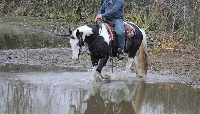 Domino, 14 jaar oud, 15,2 hh, zwart-wit Paint-hengst