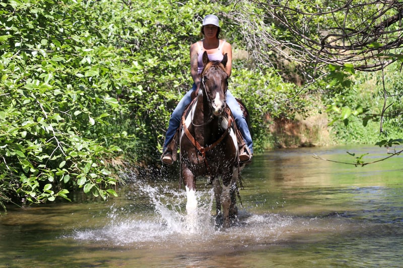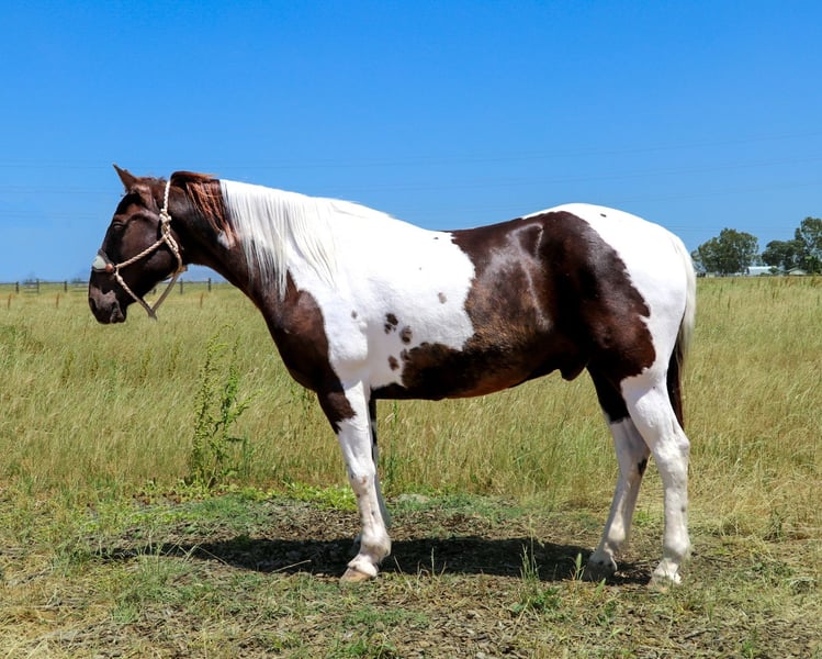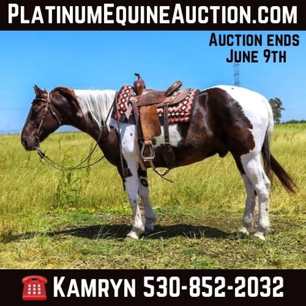 ONLINE AUCTION Place your bids at www.PlatinumEquineAuction.com Starting Bid $3500 Auction ends June 9th, 2024 Need a new saddle? Check out White Rock Saddles on our website or Facebook! Meet Badger: The Perfect Blend of Beauty and Brains! He is a grulla paint, 12 year old that stands 15.1 hands. Are you in search of a horse that combines stunning looks with an exceptional temperament? Look no further! Badger is a magnificent equine that will not only turn heads with his striking appearance but will also impress you with his intelligence and versatility. This remarkable horse has been a reliable partner in a variety of settings and is ready to bring joy and adventure to his new owner. Badger is an absolute gentleman on the trails. He is as sure-footed as they come, confidently navigating through any terrain you can imagine. Whether you’re traversing muddy paths, crossing creeks, splashing through ponds, or tackling rocky landscapes, Badger handles it all with ease. He goes up and down hills effortlessly, making him the perfect trail companion for any rider. Plus, he has a genuine love for playing in the water, making every trail ride an adventure. In the arena, Badger is a true expert. He knows his leads, has a fantastic stop, and offers a smooth, easy trot that makes riding a pleasure. Whether you’re practicing for a competition or just enjoying a leisurely ride, Badger’s responsiveness and skill make him an excellent partner. His familiarity with obstacles like tarps, smoke bombs, and flags means he remains calm and composed. Badger has been exposed to an array of environments and situations, making him incredibly adaptable. He’s accustomed to the hustle and bustle of heavy equipment, dogs, quads, dirt bikes, and bikes. Traffic, honking horns, and even the roar of semi-trucks do not phase him. Badger has been ridden through city streets and neighborhoods, calmly handling rushing cars, curious pedestrians, and kids playing basketball. His nature makes him an excellent choice for riders who want to explore both rural and urban settings. Badger has a special fondness for children and loves the attention they give him. He is a perfect gentleman around kids, making him an ideal family horse. His patient and gentle demeanor ensures that even the youngest riders can take him for a spin. He’s been used for lessons and handles them with grace. Badger is as easy-going as they come. His “in your pocket” personality means he loves to be around people and enjoys being loved on. He’s a joy to ride and be around, making every moment spent with him a pleasure. Whether you’re a seasoned rider or a novice, Badger’s sweet nature and cooperative spirit make him an ideal companion. He is also UTD on shoes, worming, shots and in shape and ready to hit those trails. He loads in a trailer with ease, stands tied, goes alone or in a group, stands to be saddled, bathed, fly sprayed, for farrier. Is great with other horses or alone , stall or pasture, he’s easy to catch as well. Badger is a rare find – a horse that combines beauty, brains, and an exceptional temperament. His versatility and reliability in a wide range of settings make him a standout choice for anyone looking for a truly special equine partner. Don’t miss the opportunity to make Badger a part of your life. Contact KW Ranch 530-852-2032 to meet this extraordinary horse we call Badger! ONLINE AUCTION Place your bids at www.PlatinumEquineAuction.com Starting Bid $3500 Auction ends June 9th, 2024 Need a new saddle? Check out White Rock Saddles on our website or Facebook!