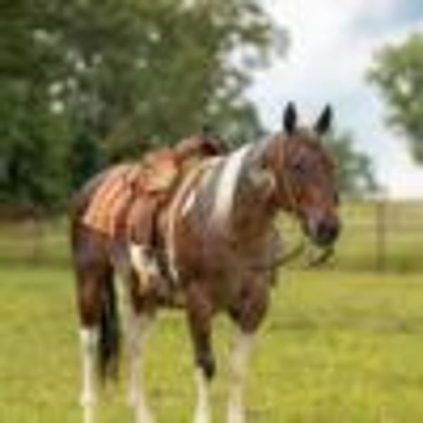 ONLINE AUCTION Place your bids at www.PlatinumEquineAuction.com Starting Bid $3500 Auction ends June 29th, 2025 Need a new saddle? Check out White Rock Saddles on our website or Facebook! Being offered for your consideration is Banks, a 14.2h, 14-year-old bay roan paint gelding with a wealth of real-world experience and a quiet, dependable disposition. This gelding is an ideal candidate for anyone in need of a seasoned, all-around mount who is both willing and capable in a wide range of environments. Banks has been extensively used in a working cattle setting, including time at the sale barn where he has reliably sorted, pinned, and loaded cattle. He is no stranger to pressure and commotion, and he handles both with calm professionalism. In addition, he has been ridden at wagon races and exposed to high-energy events, taking it all in stride without becoming reactive or unsettled. Under saddle, Banks is confident, sure-footed, and smooth. He will go out alone or with a group, crosses water, navigates rough terrain, and handles obstacles with ease. He has been ridden through town, where he has encountered traffic, dogs, bicycles, and other typical urban distractions. Banks remains composed and attentive throughout. He is also comfortable being ridden bareback or double, further showcasing his gentle nature and versatility. On the ground, Banks is easy to catch, saddle, bridle, bathe, and load. He stands quietly for grooming and farrier work and has excellent manners in the barn and trailer. Banks is the kind of horse that brings peace of mind—whether you’re heading out for a long day of work, a quiet evening ride, or anything in between. If you’re looking for a reliable, seasoned gelding with a calm presence, Banks deserves your consideration. Located in Quitman, AR. Contact Diamond L Horses Cole 479-747-3179 with any questions. ONLINE AUCTION Place your bids at www.PlatinumEquineAuction.com Starting Bid $3500 Auction ends June 29th, 2025 Need a new saddle? Check out White Rock Saddles on our website or Facebook!