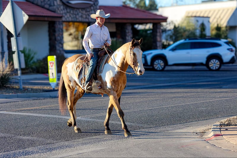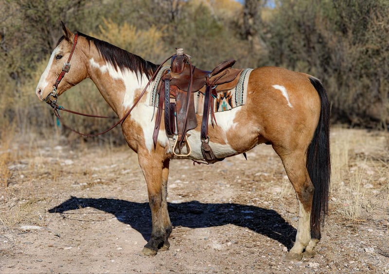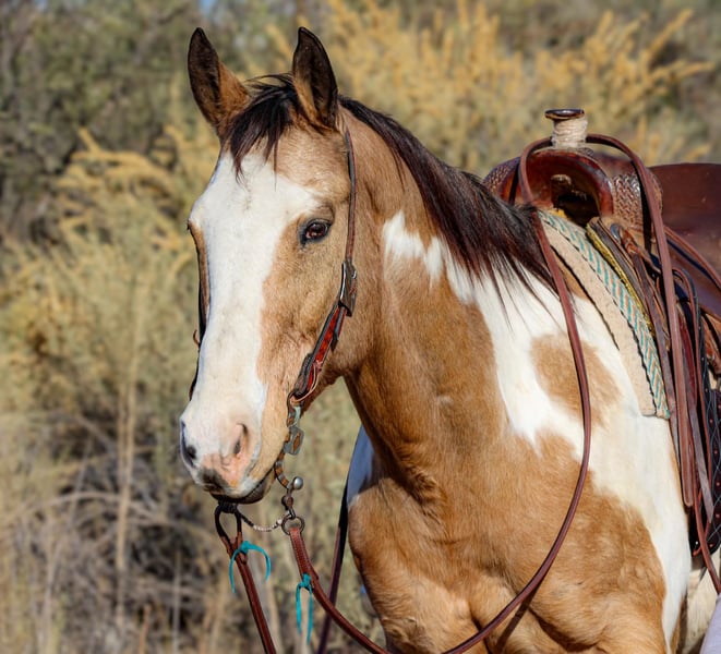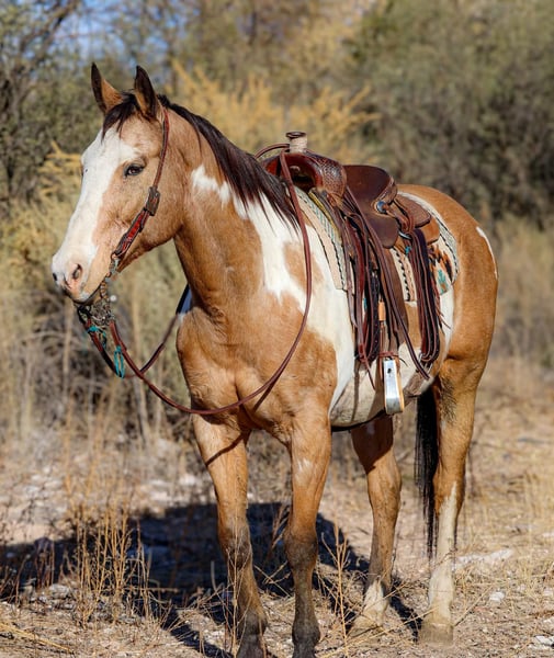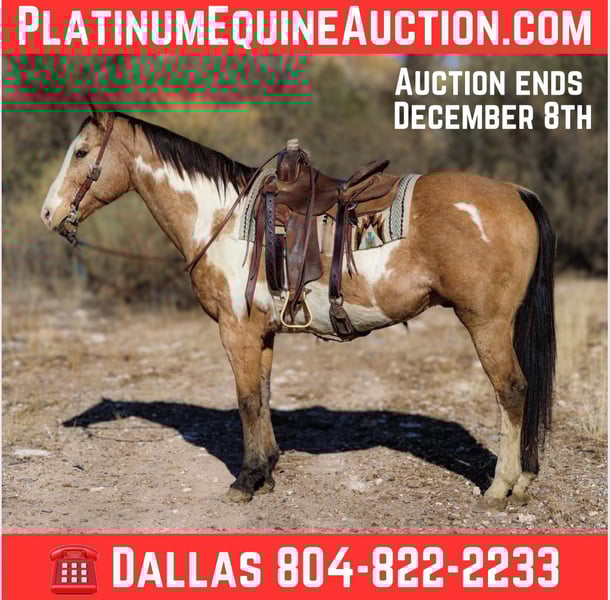 ONLINE AUCTION Place your bids at www.PlatinumEquineAuction.com Starting Bid $3500 Auction ends December 8th, 2024 Need a new saddle? Check out White Rock Saddles on our website or Facebook! Casper is a 14 year old grade paint gelding standing 15.1hh. If you’re looking for a safe, gentle, well-versed gelding look no further!!! Casper has spent the majority of his life on a dude string accommodating every level rider. Whether you’re a beginner rider building your confidence and learning the ropes, or an experienced rider ready to hit the trail, Casper will take excellent care of you! Mosey on through town, ease down the trail, climb up and down rough rocky mountains, or venture through the brush, Casper will do it all! Not only is this gelding an absolute joy to hit the trails on, he’s fantastic in the arena as well! Casper will walk, trot, and lope both directions in a calm collected manner on a draped rein, as well as neck rein and back up with ease. Great to bathe, groom, saddle, and shoe! If you’re looking for a great all-around safe, gentle gelding to add to your family, Casper is your man! Casper does have an old injury on his right knee that left a bump, but we have never had any issues with it bothering him. He will come with a lameness exam from our vet. Located in Camp Verde, AZ. D/C Equine Dallas 804-822-2233. ONLINE AUCTION Place your bids at www.PlatinumEquineAuction.com Starting Bid $3500 Auction ends December 8th, 2024 Need a new saddle? Check out White Rock Saddles on our website or Facebook!