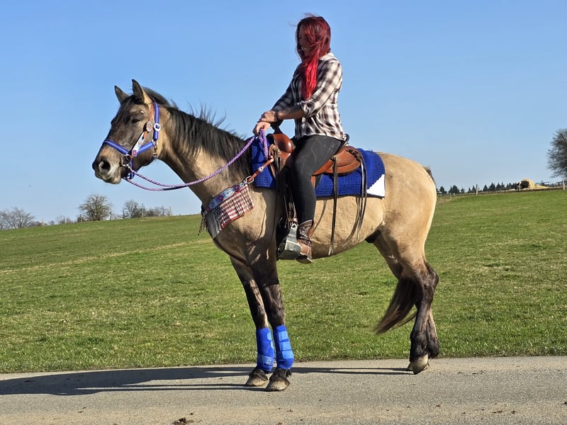 Westerntyp Wallach – jung, brav & mit toller Basis NANO ist ein Sonnenschein ! Alter: 3 Jahre Er hat ein halbes Papier , Paint-Horse Stockmaß: ca. 152 cm (noch im Wachstum) Preis: 6900,- AKU: vorhanden ✨ Beschreibung: Dieser 3-jährige Westerntyp Wallach überzeugt mit seinem kompakten, harmonischen Gebäude und seiner ruhigen Art. Er ist bereits angeritten und zeigt sich dabei sehr brav, aufmerksam und lernwillig. Für sein junges Alter bringt er eine tolle Einstellung zur Arbeit mit. Unter dem Sattel bleibt er gelassen, gibt sich Mühe alles richtig zu machen und vermittelt ein angenehmes Reitgefühl. Im täglichen Umgang ist er freundlich, unkompliziert und gut erzogen. Aktuell misst er ca. 152 cm und befindet sich noch im Wachstum – ideal für alle, die sich ihren jungen Partner weiter ausbilden möchten. Ein vielversprechender Nachwuchswallach mit bester Grundlage für den Freizeitbereich und die weitere Western-Ausbildung. Geeignet für: Reiterinnen und Reiter, die Freude daran haben, ein junges Pferd weiter zu fördern. Ideal als zukünftiges Freizeit- oder Westernpferd. Unsere Pferde werden regelmäßig: – entwurmt – vom Schmied betreut – osteopathisch kontrolliert Hofladen: Westernsättel, Trensen & Zubehör Transport sowie passendes Equipment auf Wunsch günstig organisierbar Unser Service: ✅ 3 Monate Umtauschrecht ✅ Proberitt: 35 €, jedes weitere Pferd 25 € (beim Kauf am selben Tag angerechnet) ✅ 100 € Sofort-Rabatt bei Abholung oder Transport am gleichen Tag ✅ Persönliche & ehrliche Beratung Anfragen bitte ausschließlich telefonisch: 0171 – 4001968 Erreichbar täglich von 8–20 Uhr ⚠️ Keine E-Mail oder WhatsApp ⚠️ Alle Angaben ohne Gewähr