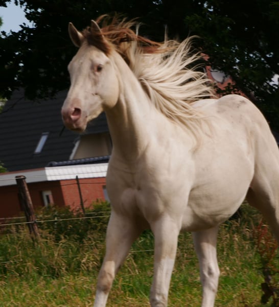 Sehr netter, aufgeschlossener Paint Horse Wallach in der Farbe Champagne Dun Tobiano sucht auf diesem Wege ein neues Zuhause. Er ist in 04/2022 geboren, sein Stockmaß beträgt zz. 1,50m, 5 Panel N/N. Noch nicht geritten, da er sich in Ruhe entwickeln durfte. Er kennt Spaziergänge, Autos, Trecker, Kühe und Schafe. Im Offenstall aufgewachsen, gut sozialisiert und rangniedrig. Ein liebenswerter Kerl, der sehr am Menschen interessiert ist und gern bespasst wird. Aus persönlichen Gründen nur in beste Hände, kein Notverkauf.