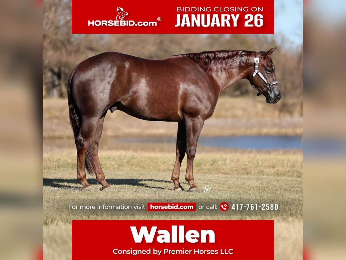 𝐉𝐀𝐍𝐔𝐀𝐑𝐘 ⭐️𝑨𝒍𝒍 𝑺𝒕𝒂𝒓 𝑳𝒊𝒏𝒆𝒖𝒑⭐️ Happening now thru MONDAY | JANUARY 26th - Available EXCLUSIVELY on HorseBid's website! For more details and to register visit: www.Horsebid.com CONSIGNOR CONTACT: Premier Horses LLC 417-761-2580 LOCATION: Buffalo, Missouri BREED: Quarter Horse REGISTERED: Yes REGISTERED NAME: Chasing You COLOR: Chestnut HEIGHT: 15.2 AGE: 4 GENDER: Gelding From the moment you see him, Wallen stands out as a gelding built to impress both on paper and under saddle. Chasing You, is an exceptionally well-bred gelding with elite reining bloodlines on both sides. He is by Tricked Out Spook (LTE $71,703.35; PE $803,566.34+) and out of the legendary mare Little Miss Whizzer (LTE $6,846.39; PE $109,488.13), combining proven performance ability with powerful production. He is the definition of tall, dark, and handsome—nearly perfectly built with a big, strong hip, a beautifully sloped shoulder, and a refined, attractive head. His dark chestnut coat gleams in every light, giving him a rich, eye-catching presence that draws attention wherever he goes. Under saddle, Wallen rides like a dream and offers a tremendous amount of natural self-carriage, staying soft, balanced, and correct in everything he does. He is confidently performing most of the reining maneuvers, never missing a beat, and consistently delivers balanced circles, seamless spins, and a solid, confident stop. Naturally athletic and smooth, he is enjoyable and easy to ride, making him suitable for a wide range of riders and goals. Outside the arena, Wallen is fun, willing, and adventurous. He enjoys being taken down the trails and handles new environments with confidence and a great attitude. He willingly goes through water, travels up and down embankments, and navigates challenging terrain with ease. He crosses bridges quietly, checks the mailbox without hesitation, steps up onto platforms, and goes confidently across logs. With his elite pedigree, athletic ability, and willing mind, Wallen is an exciting prospect for the reining pen, ranch classes, or for someone seeking a standout gelding that is as enjoyable to ride as he is impressive to look at. ✔️ Wallen passed a pre-purchase exam on 1/15/2026.