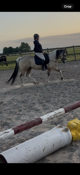 Prachtige paint horse ruin, met Dun It afstammeling. Ik heb hem nu 3,5 jaar maar ik kan helaas niet de dingen met hem doen die ik graag zou willen. Hij kent de volledige basis, dressuur, springen en wat dingen uit de western. Hij heeft een goudeerlijk hart en doet alles voor je. Hij is van april 2020 en is nu dus 5,5 jaar oud.