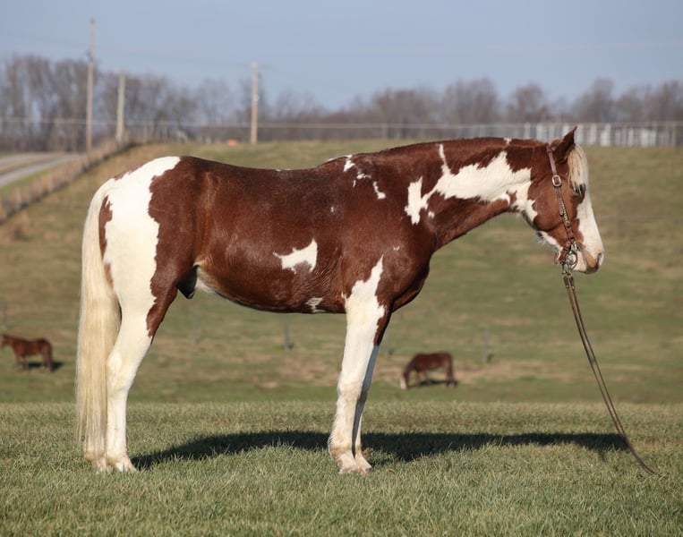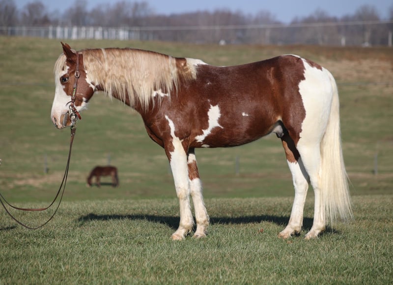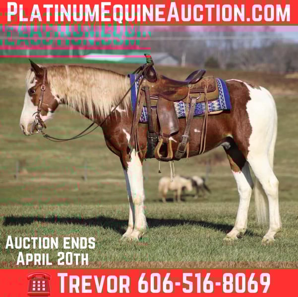 ONLINE AUCTION Place your bids at www.PlatinumEquineAuction.com Starting Bid $3500 Auction ends April 20th, 2025 Need a new saddle? Check out White Rock Saddles on our website or Facebook! Hidalgo is a beautiful chestnut tobiano gelding that is well built, standing around 15hh and he is 5 years old! Hidalgo was raised and trained by one of the best young trainers around. He is very friendly, loves attention and has learned everything the correct way. Hidalgo has done some natural horsemanship training and he knows some tricks as well. He will lay down on command and enjoys nothing better than taking a nap with his best friend. Hidalgo lopes nice circles, catches the correct leads and has a good stop. Hidalgo just eases along down the trail and loves going on trail rides. He will cross creeks, ditches, logs and navigate rough rocky areas. He has been exposed to all kinds of wildlife and will go anywhere that he is asked too. He has been rode many miles in the mountains and encountered every obstacle possible on the trail. He will go up or down even the steepest slopes, across deep creeks, over downed trees, and over all types of rough terrain while still being sure footed. Hidalgo has been ridden down the highways and is traffic safe as well. He has been used around the ranch, he has sorted, penned and pasture roped. If you need a best friend who is broke, quiet, gentle, safe horse for ranch or trails… Hidalgo is your guy! Call Trevor Patrick 606-516-8069 with any questions or to make a Buy It Now Offer. Located in Parkers Lake, KY. ONLINE AUCTION Place your bids at www.PlatinumEquineAuction.com Starting Bid $3500 Auction ends April 20th, 2025 Need a new saddle? Check out White Rock Saddles on our website or Facebook!