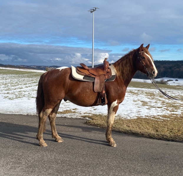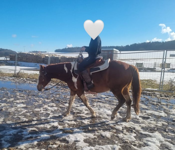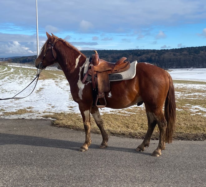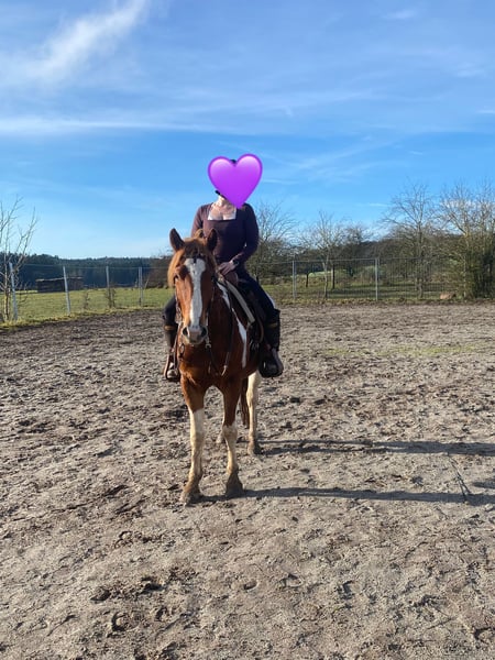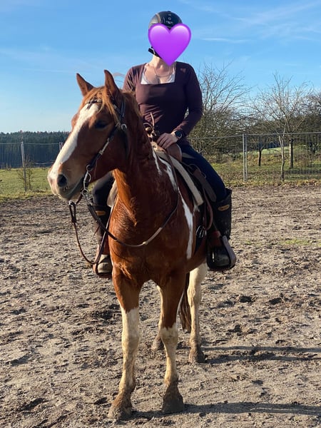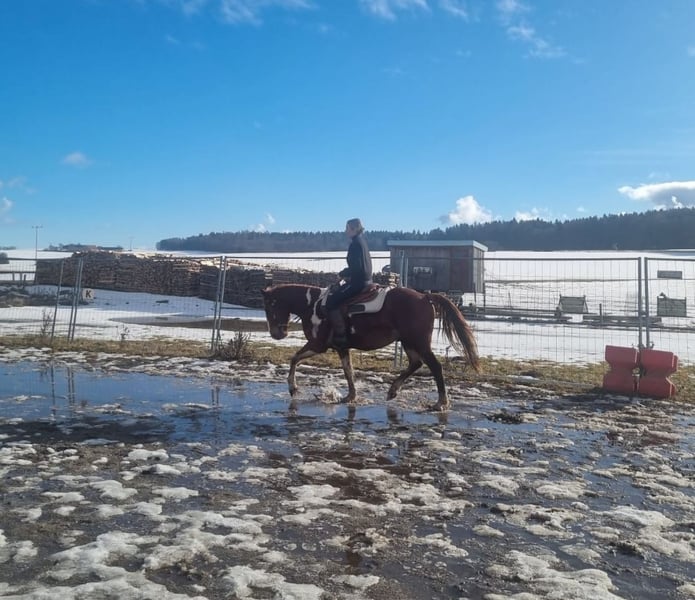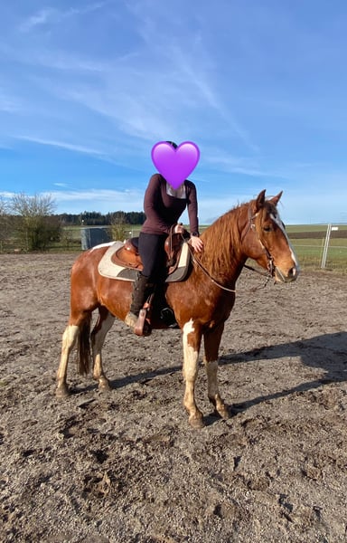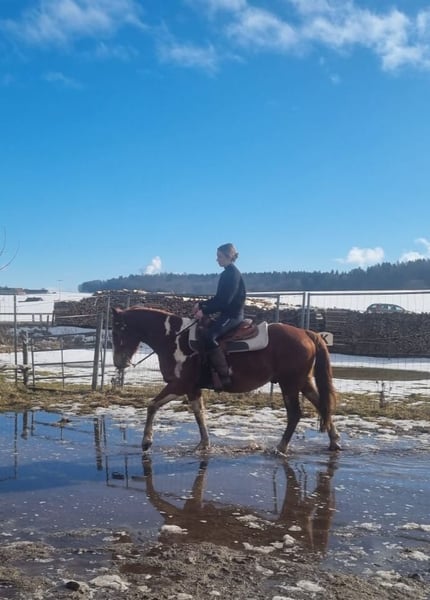 For sale is this wonderful, gentle, and reliable Paint Horse cross gelding, "Smart Sony." Smarty is 5 years old, approximately 15.3 hh, and impresses with his balanced temperament and impressive build. He is absolutely trail-safe and truly the definition of a perfect riding horse for outdoor adventures! Additionally, he is well-versed in versatile work on the riding arena, ground work, walks, and longer trail rides. Smarty is healthy, regularly vaccinated and dewormed, and is ridden by both teenagers and adults in all three gaits. He is also compatible with other horses, lives in a mixed herd during the day and is stabled at night, with turnout in an open stall as well known to him. Thanks to his compact build and calm, brave nature, Smarty is truly a leisure partner for fun and enjoyment! If interested, please feel free to contact us at 01776853138.