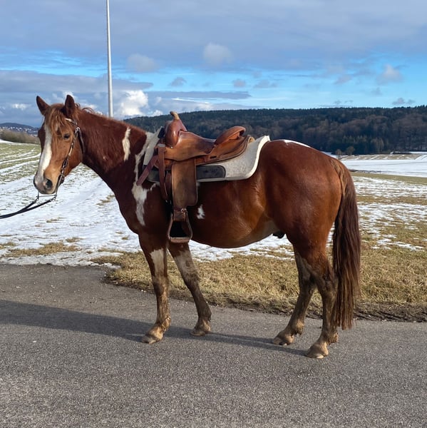 Zum Verkauf steht dieser wundervolle, gutmütige und verlässliche Paint-Horse-Mix Wallach „Smart Sony“. Smarty ist 5 Jahre alt, ca. 153cm groß und überzeugt durch seinen ausgeglichenen Charakter, sowie stattlichen Körperbau. Der Herr ist absolut geländesicher und die wahre Indefinition eines perfekten Ausreitpferdes! Zudem ist er mit der vielseitigen Arbeit auf dem Reitplatz, der Bodenarbeit, Spaziergängen und längeren Geländeritten bestens vertraut. Smarty ist gesund, wurde regelmäßig geimpft/ entwurmt und wird sowohl von Jugendlichen, als auch Erwachsenen in den drei Grundgangarten geritten. Des Weiteren ist er mit allen Pferden verträglich, steht tagsüber im gemischten Herdenverband und nächtlich in der Box, wobei ihm der Offenstall ebenso bekannt ist. Aufgrund seines kompakten Fundaments und ruhigen, mutigen Wesens ist Smarty wirklich ein Freizeitpartner zum Spaß haben! Bei Interesse können Sie uns gerne unter der 01776853138 kontaktieren.