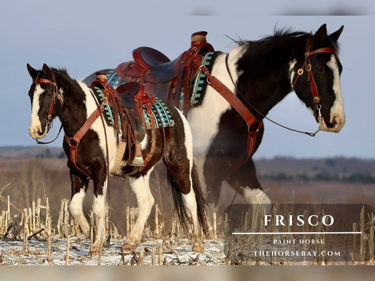 Meet Frisco he’s a 6yr old Paint Gelding standing at 15 hands tall. He is nice and stout so he can carry a heavier rider. He is just an awesome trail partner to have. He’s very smooth under saddle and has the right mindset you can’t go wrong with him. He rides right between your legs so moves off of leg pressure really good. He knows how to move his shoulders, hindquarters, and side passes. He will direct or neck rein. Stops off of your seat or just say whoa he knows the word. He also will do flying lead changes and picks up the correct leads. He has a VERY smooth trot that’s easy to sit or post too. And his canter is also VERY smooth. The one thing I absolutely love about him is that he stands stock still to get on. Even if you don’t ride him for awhile he will always stand very still for mounting. He has good ground manners, hauls good, and loads right up in the trailer and backs right out. He is amazing out on the trails. Nothing phases this guy he is NOT easily spooked. He will cross any kind of water creeks, rivers, etc. Crosses little wooden bridges and logs. He goes anywhere you point him. I feel like I’m riding an older been there done that type of horse when I’m riding him. And that’s because he has had a ton of experience under his belt already at 6yrs old so he is a been there done that type of horse. He is fine with traffic. I’ve had big trucks and busses go by and he never cares. Again he is NOT spooky. He will leave home alone and will separate away from the other horses out on the trail. He will also pony another horse. He is sure footed and will tackle a steep bank like it’s no problem. He’s fine with wildlife out on the trails. And he’s used to riding with a dog that loves to constantly lag behind then come charging up full speed behind Frisco. Frisco is also handy for brush popping. You just point him towards a brushy area he sets his head down and plows right through with branches coming back and smacking him in the hind end. He has NEVER offered to do anything bad or crazy. He has NO bad habits or vices. If you let him sit a few weeks you can just grab him out of pasture slap a saddle on and head out down the road he’s a very safe mount what you see is what you get with him. And he just exudes confidence out on the trails. He gets along out in the pasture low to middle of the pecking order. He is an easy keeper. He is good for getting his feet trimmed. Stands good for tacking. I would say he’s a husband/wife safe horse. He has been ridden by teens all the way up to Grandmas. If you know how to ride, you’ll get along just fine with Frisco and you’re going to appreciate how steady he is. He’s a horse that takes care of his rider. He is up to date on vaccines, dewormings, coggins, and a vet check. Just call if you want to come out and see him or have any questions.