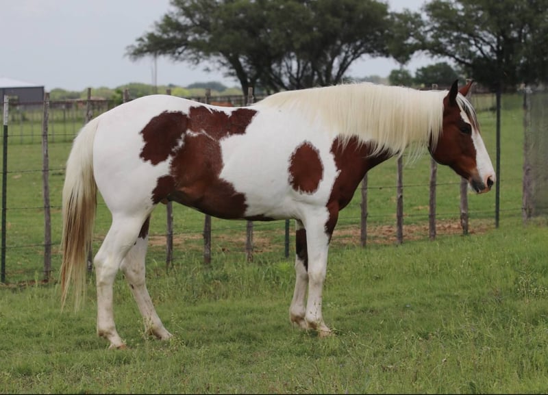 ONLINE AUCTION Place your bids at www.PlatinumEquineAuction.com Starting Bid $3500 Auction ends May 11th, 2025 Need a new saddle? Check out White Rock Saddles on our website or Facebook! Check out this amazing gelding we have had the opportunity to offer to the public, Desperado! At only 8 years old, he stands 15.1hh tall and this gelding is ready to find his forever family! Nothing phases this guy is always eager to do is job. This horse not only looks majestic, but he rides like it too. Walk, trot, lope, this horse moves like a dream. He even rides English! The kind of a horse that you can show off to all of your friends. This is the ultimate gift for any family member, as he is gentle and safe! Desperado is well broke, does whatever is asked of him no matter what, he makes it fun! This is the perfect trail horse, as he doesn’t have a care in the world, loves just to go all day with his person. He rides great in the arena, knows both his leads, has a smooth trot as well! I could write a book about him all day but he speaks for himself! He has even been roped on a bit as well! No matter how busy your life may get, Desperado is always ready to saddle up and ride off without a care in the world! He will always meet you at the gate, especially with a little cookie interruption. Located in Lipan Texas We can help arrange hauling anywhere in the US, Hawaii or Canada! Please call or text Makenna Hartzell 817-659-3778 for serious inquiries! ONLINE AUCTION Place your bids at www.PlatinumEquineAuction.com Starting Bid $3500 Auction ends May 11th, 2025 Need a new saddle? Check out White Rock Saddles on our website or Facebook!