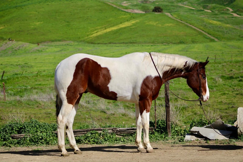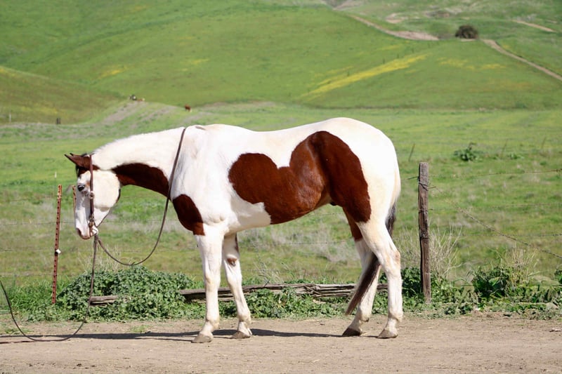 "AVAILABLE ON ONLINE HORSE AUCTION AT www DOT PlatinumEquineAuction DOT com BIDDING OPEN NOW thru SUNDAY | FEBRUARY 15TH! *Final price will be determined on auction site* CONSIGNOR CONTACT INFO: Cheyenne Rey 831-537-8746 LOCATION: Bitterwater, CA Calypso is a truly gorgeous and uniquely marked 8-year-old Paint gelding standing a solid 16 hands with a presence that turns heads and a personality that wins hearts. This big, handsome boy is the definition of a puppy dog — friendly, affectionate, and always wanting to be part of whatever is going on. He is very much an “in-your-pocket” type who loves attention and will happily greet you at the gate, ready for his next adventure. Calypso is a joy to have around the barn. He gets along wonderfully with other horses, is easy to catch, and is polite and patient to handle. He stands quietly in the cross ties for grooming and tacking, enjoys baths, and is easy to clip. He is good with his feet, loads and hauls well, and has the kind of steady, uncomplicated demeanor that makes him a pleasure to be around. Under saddle, Calypso is laid-back, curious, and confident. He has been extensively ridden out on coastal trails and absolutely loves the beach, taking new environments and scenery completely in stride. He has been exposed to a wide variety of situations and remains calm and level-headed, never getting worked up or reactive. He is comfortable around flags, tarps, and other obstacles both near him and on him. Calypso has a very appealing “whoa-than-go” mindset. He is happy to mosey along with friends, head out solo, or just enjoy a relaxing ride wherever you point him. In the arena, he knows his leads, travels out nicely, has a good stop, and will walk, trot, and lope pretty circles with ease. He is straightforward and pleasant to ride, making him easy for a wide range of riders to get along with. He can also sit with time off and come right back into work without fuss. Calypso is an extremely nice young gelding with the looks, brain, and temperament to go in many directions. Whether you’re looking for a dependable trail companion, a quiet arena partner, or a versatile horse to continue developing, Calypso is the kind that makes every ride enjoyable and every barn visit better. He is located in Bitterwater, CA. For more info contact Cheyenne Rey 831-537-8746.