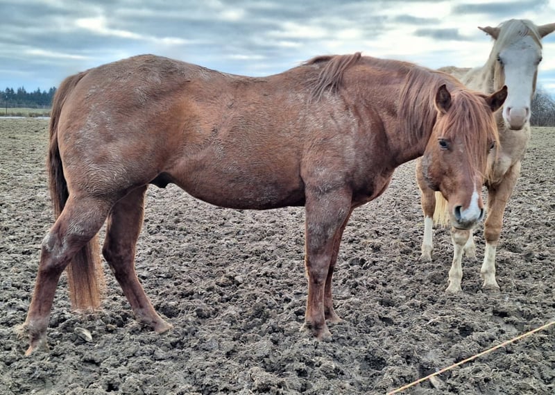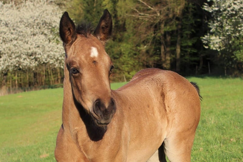 Expressive QH Stallion Red dun Born in 2016, age 7 Approximately 14.1 hh (1.44 m) tall 5-panel n/n and IMM negative tested Wallstein is a very handsome, compact stallion with a harmonious build and straight legs. He has a refined, intelligent head, a thick mane, and a lot of expression. He has previously been used for natural cover breeding and has not yet been ridden. In recent years, he has peacefully shared a herd with mares and foals year-round and is currently housed in a paddock alongside two young stallions and some mares. He is accustomed to 24/7 pasture turnout in summer, and has been exposed to varying pastures near roads, forests, and woodland paths, making him familiar with traffic, farm machinery, and public activity. He is also used to being led on halter and moved with the herd. His pedigree includes Walla Walla Dun It (Hollywood Dun It), and he also has notable names on his dam’s side, such as Great Resolve (Great Red Pine) and High Brow Hickory. Smart, refined, and agile, he passes on his willing and eager-to-please nature to his offspring. Foals from him are currently on the farm and can be viewed during a visit.