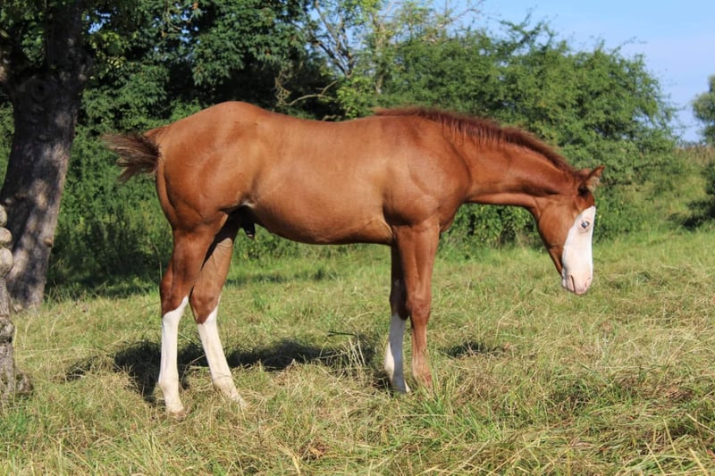 Wytrzymały ogier Quarter Horse kolor red dun ur. w 2016 roku, ma 10 lat około 147 cm wzrostu testy 5 Panel n/n oraz IMM negatywne Wallstein to bardzo elegancki, kompaktowy ogier o harmonijnej budowie ciała i prostych nogach. Posiada piękną, delikatną głowę, gęstą grzywę oraz dużo wyrazu. Dotychczas był użytkowany jako ogier reprodukcyjny (naturalna krycie) i nie był jeszcze jeżdżony. Przez ostatnie lata spokojnie przebywał w stadzie z klaczami i źrebakami, a obecnie stoi z dwoma młodymi ogierami w boksie obok klaczy. Latem był wypasany przez całą dobę, a dzięki zmiennym pastwiskom miał kontakt z drogami, lasami i terenami leśnymi, co zaznajomiło go z ruchem ulicznym, maszynami rolniczymi oraz z tłumem ludzi. Przyzwyczaił się również do prowadzenia na lonży w towarzystwie stada. Jego pochodzenie z Walla Walla Dun It (Hollywood Dun It) robi wrażenie, a od strony matki pochodzi od znanych koni, takich jak Great Resolve (Great Red Pine) czy High Brow Hickory. Jest bystry, delikatny i zwinny, a jego chęć do pracy i zadowolenia jest przekazywana na potomstwo. Obecnie jego potomstwo jest jeszcze na farmie i można je obejrzeć podczas wizyty. Zdjęcia wcześniejszych źrebiąt dostępne są w galerii.