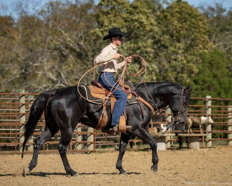 ⚜️𝐓𝐇𝐄 𝐅𝐀𝐋𝐋 𝐇𝐄𝐑𝐈𝐓𝐀𝐆𝐄 𝐂𝐋𝐀𝐒𝐒𝐈𝐂⚜️ Happening now thru MONDAY | NOVEMBER 3rd - Available EXCLUSIVELY on HorseBid's website! For more details and to register visit: www.Horsebid.com CONSIGNOR CONTACT: Jamie Thomason 270-772-1706 LOCATION: Auburn, KY BREED: AQHA REGISTERED: Yes REGISTERED NAME: IMA DRIFTWOOD 1602 COLOR: Smokey Black HEIGHT: 14.2 AGE: 9 GENDER: Stallion The perfect horse! Family friendly, safe for anyone, the kind everyone wishes they had in their barn. Elvis is as versatile as he is dependable. Whether you’re heading out for a relaxing trail ride, letting the kids climb on for an afternoon adventure, or backing into the box, he’s ready to go to work with a calm, steady attitude. He’s been used for lessons, carried non-horsey guests, tie-down roping, heading, heeling, breakaway, and ranch work, proving himself as a solid, trustworthy partner in and out of the arena. A true gentleman through and through, he handles every situation with patience and confidence. This horse isn’t just another mount — he’s the kind you can count on day after day, a loyal partner, and a true friend. Elvis is a 9 yr old, Smokey Black, AQHA Stallion, standing 14.2 hands. A deluxe trail mount, Elvis will go absolutely anywhere you point him. Zero spook & Confident, sure-footed, and steady, he’s been ridden on countless trails and overnight camping trips, always taking everything in stride. Whether you’re winding through wooded paths, crossing creeks, climbing hills, in town, through traffic or riding out across open country, he moves out willingly and safely for riders of any level. He’s the kind you can relax and enjoy the ride. In the arena, Elvis had been hauled to every setup. Indoor & outdoor, even to ranch rodeos. On the head side, been used for 12 point ropings and down. Good for the 8 point ropings on the heel side & ready to haul in the tie down & breakaway roping. Elvis has been used on a seed stock cattle operation his entire life. Accustomed to all aspects of ranch work. Tagging & doctoring calves, gathering strays, & working along stock dogs. Always honest & an asset to his partner. Everyone loves Elvis! He has been the spotlight of several senior photos sessions, this guy belongs on the movie screen! He’s gorgeous, “The King” of the barn. Visitors always stop by his stall to admire his beauty. We are often asked why Elvis was kept a stallion. You wouldn’t know he was a stallion. He is quiet, pastures, stalls, hauls, and stands tied along side mares. He passes the same calm, quiet, willing demeanor, as well as stunning looks on to his foals. He carries a dilute gene, was bred to a few select mares, and has sired palomino roans, bay roans, sorrels, and black foals. Each and every one have possessed the same great qualities that we admire in Elvis. If owning a stallion or breeding isn’t in your future plans, there are no contraindications in having Elvis gelded if you wish. If you would like to meet Elvis prior to adding him to your family, we’d be glad to have you. Arena, trails, & live cattle available. Elvis sells current on all cares, PPE’s welcome, & we can provide assistance in arranging transportation to anywhere!
