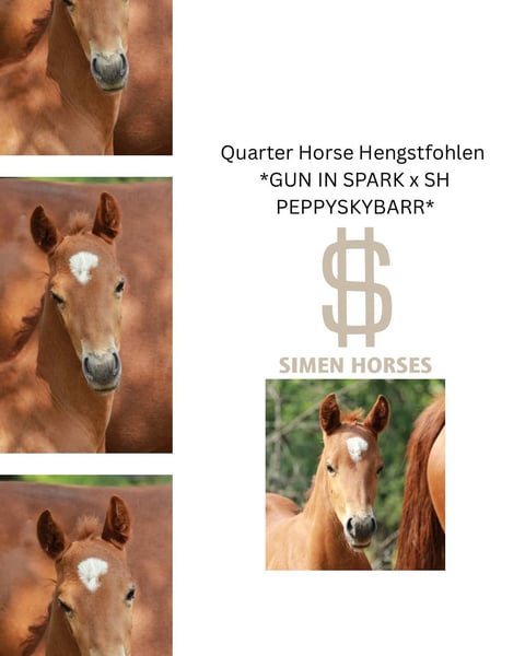 Pretty, very calm colt. Super pedigree. Suitable for sport and of course also for ambitious leisure riders. Family horse. Learns the foal ABC until weaning. Estimated final height 150cm. Grows up healthy on our large Black Forest pastures, in a herd. - Stable foundation and strong bones - Good conformation - Good character - Easy to handle - 5 Panel N/N through the parents - CoR AQHA and DQHA passport are applied for **Entering the yard and the pastures of the operation for viewings as well as riding of sale horses is always at your own risk! Exclusion of any warranty! For trial rides of our sale horses, we charge €50. This amount will be deducted from the purchase price of a horse.**