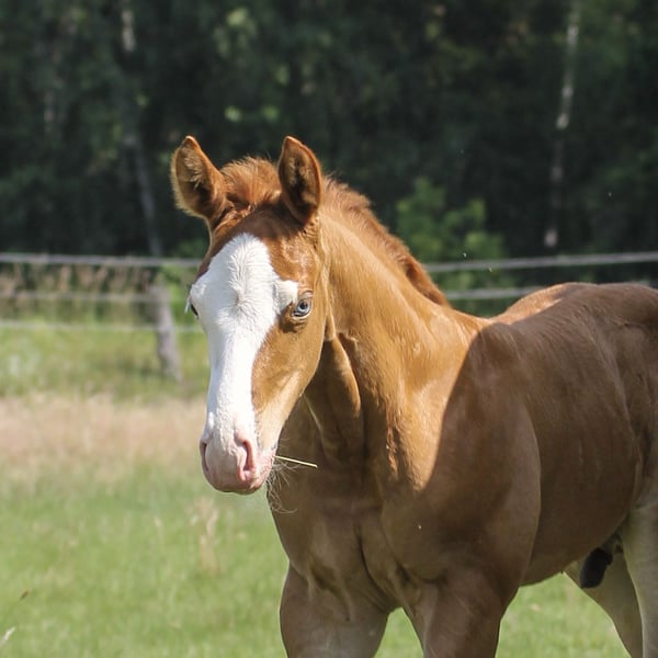 Cole - seine schöne Farbe, das blaue Auge und sein bildhübsches Erscheinungsbild machen ihn zu einem echten Hingucker. Er ist 2025 geboren und wird ein geschätztes Endmaß von 150 cm bekommen. Cole ist ein kompakter, kräftiger und stark bemuskelter Quarter Horse Hengst. Sein gutes Gebäude, seine Gesundheit und sein freundlicher, menschenbezogener Charakter sprechen für ihn. Cole ist gut sozialisiert, kennt Tierarzt und Hufschmied, wächst in einer kleinen Stuten- und Fohlengruppe auf. Seine Gelassenheit, Lernwilligkeit und Offenheit machen ihn leicht im Handling und sehr angenehm im Umgang. Mit erstklassiger Reining-Abstammung ist er bestens für den Sport, Turnier oder auch die Freizeit geeignet. Cole zeigt beeindruckende Bewegungen und hat das Potenzial, ein richtig athletisches Pferd zu werden. Da er ein Hengstanwärter ist, wird er gerne in entsprechende Hände abgegeben, aber auch Freizeitreiter mit gehobenen Ansprüchen können mit ihm glücklich werden. Die klinische AKU wird im Rahmen des Verkaufs von der Züchterin in Auftrag gegeben.